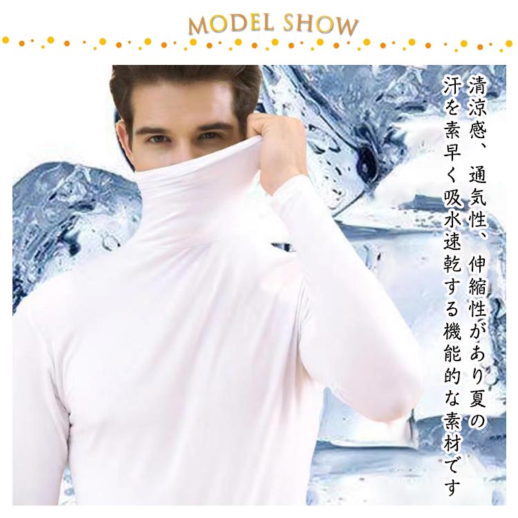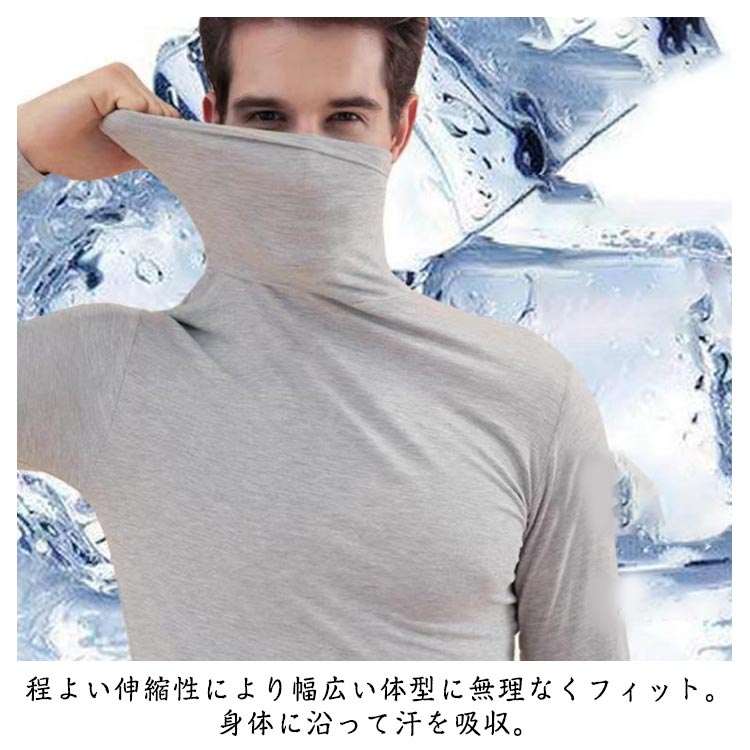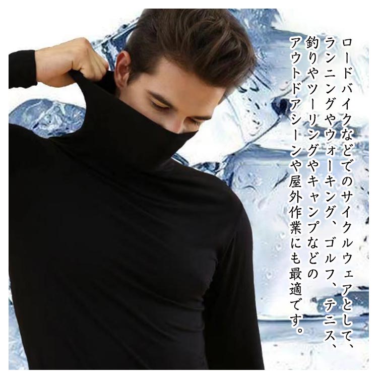 接触冷感 ゴルフ インナーシャツ メンズ ゴルフウェア インナー 長袖 ハイネック 冷感 薄手 夏 スポーツシャツ アンダーウェア UVカット 通気 吸汗 速乾 日焼け対策 ストレッチ ひんやり 涼感 トレーニングウェア スポーツウェア おしゃれ 送料無料