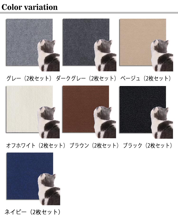 | 色 | グレー(2枚セット) ダークグレー(2枚セット) ベージュ(2枚セット) オフホワイト(2枚セット) ブラウン(2枚セット) ブラック(2枚セット) ネイビー(2枚セット) |