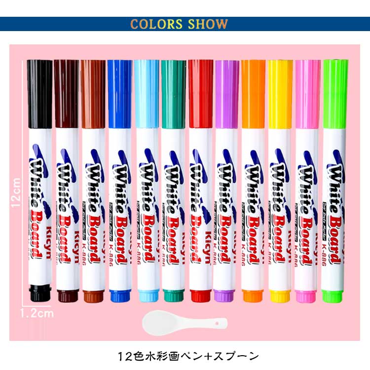 水彩画ペン 魔法の水絵ペン 12色 水フローティングペン 水中でのDIY描画落書き ホワイトボードマーカー 白板ペン 魔法の水絵ペン 魔法の落書き描画ペン スプーン付 水落書きペン マジックウォーターペン ギフト