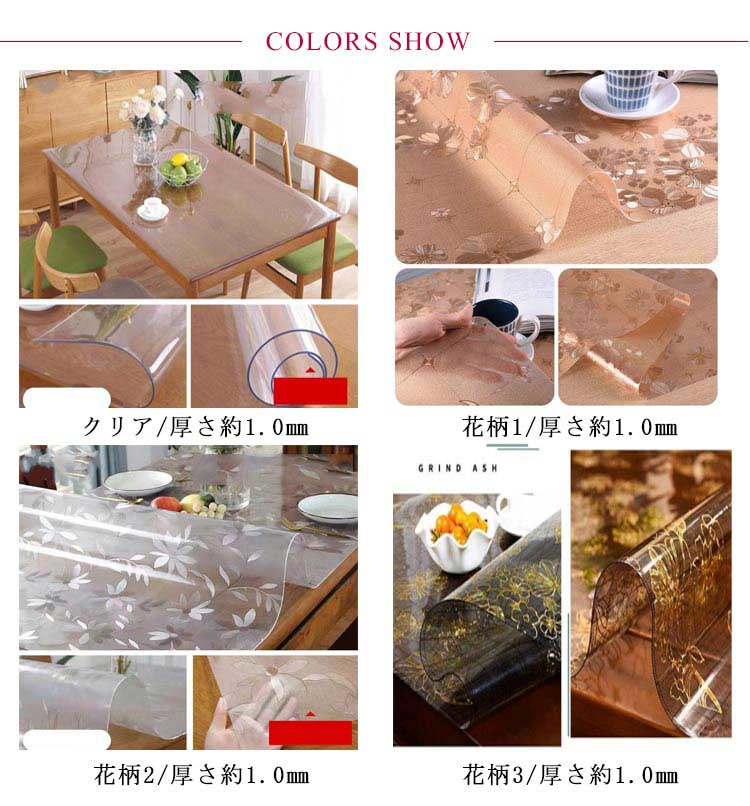 | サイズ | クリア/厚さ約1.0mm 花柄1/厚さ約1.0mm 花柄2/厚さ約1.0mm 花柄3/厚さ約1.0mm |