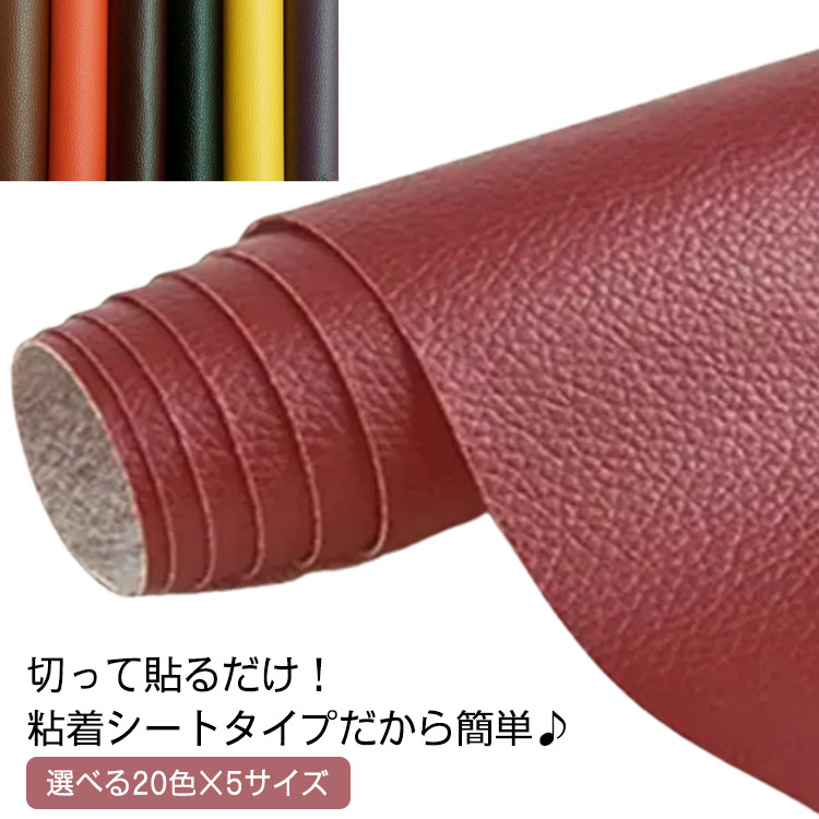 選べる20色×5サイズ 貼るレザー 補修シール シボ 合皮 革 しぼ フェイク革 粘着タイプ カット可能 補修布 ソファ補修 合皮 椅子 合成皮革 接着性抜群 合皮生地 シートカバー 財布 バッグ 修理 張替え DIY