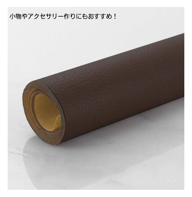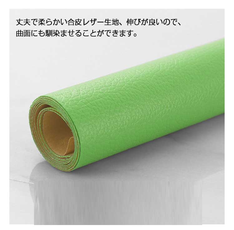 | 切って貼るだけ!粘着シートタイプだから簡単? 天然皮革に比べて色落ちしにくく、耐久性にすぐれた素材! 丈夫で柔らかい合皮レザー生地、伸びが良いので、曲面にも馴染ませることができます。 表面は合皮無地、若干光沢があり、高級感があります。本物のような質感で高級感を演出してくれます! 接着剥の粘着力が優れていて簡単に剥がれません。 補修シールとして自転車のサドル?車のシート?バイクのシート?ソファーのシートなどの張り替え、修補、破れ隠し、椅子の座面張替。 壁紙、インテリア、DIYなどにも使用でき、色々な用途にご利用いただくことができます。化粧箱、ギフトケースなどに貼るにも最適です。 小物やアクセサリー作りにもおすすめ! | |