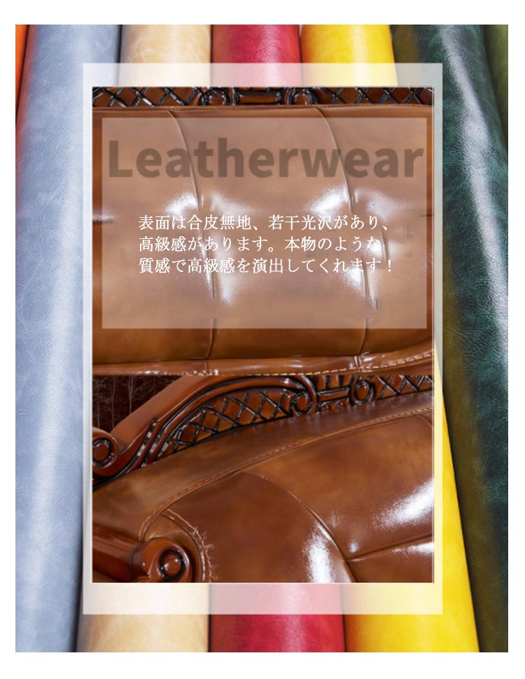 全20色!貼るレザー生地!防水・接着性抜群な貼るレザー登場!丈夫で柔らかい合皮レザー生地、伸びが良いので、曲面にも馴染ませることができます。表面は合皮無地、若干光沢があり、高級感があります。本物のような質感で高級感を演出してくれます!合皮レザー生地の裏面が接着シールになっており、様々な物に貼り付けることが出来ます。接着剥の粘着力が優れていて簡単に剥がれません。ご自宅にはハサミで簡単に作業が可能、扱いやすさも大きな魅力の便利レザーシートです。豊富なカラーバエーション気軽に、インテリアのイメージチェンジも楽しめます!自分好みのインテリアが実現!補修シールとして自転車のサドル・車のシート・バイクのシート・ソファーのシートなどの張り替え、修補、破れ隠し、椅子の座面張替。壁紙、インテリア、DIYなどにも使用でき、色々な用途にご利用いただくことができます。化粧箱、ギフトケースなどに貼るにも最適です。