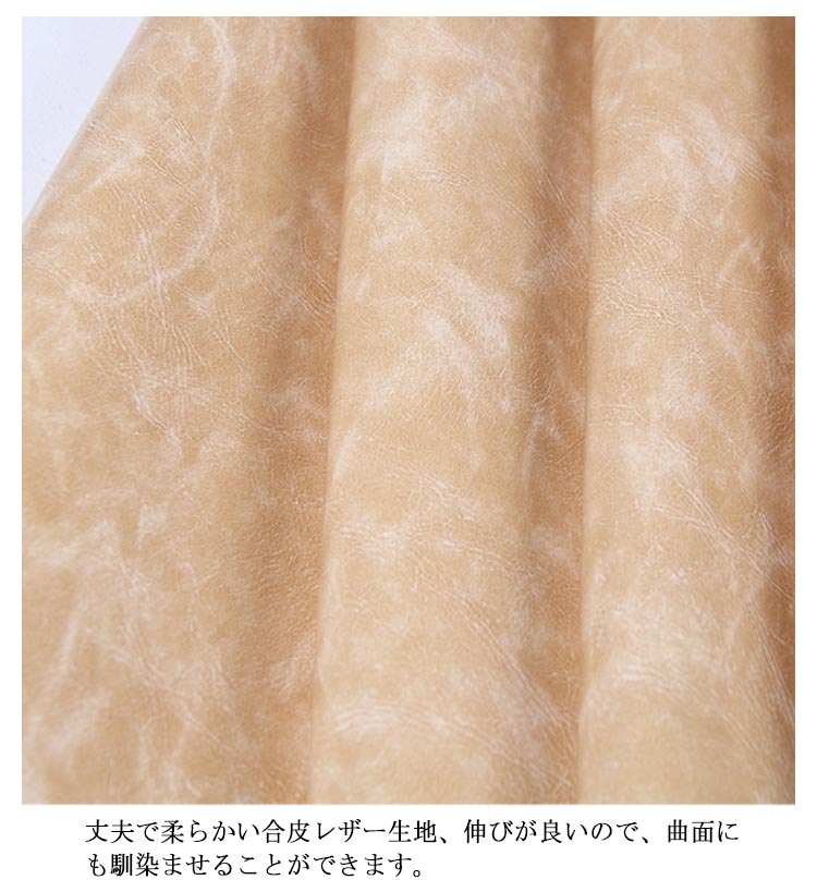 | 全20色!貼るレザー生地!防水?接着性抜群な貼るレザー登場! 丈夫で柔らかい合皮レザー生地、伸びが良いので、曲面にも馴染ませることができます。 表面は合皮無地、若干光沢があり、高級感があります。本物のような質感で高級感を演出してくれます! 合皮レザー生地の裏面が接着シールになっており、様々な物に貼り付けることが出来ます。接着剥の粘着力が優れていて簡単に剥がれません。 ご自宅にはハサミで簡単に作業が可能、扱いやすさも大きな魅力の便利レザーシートです。 豊富なカラーバエーション気軽に、インテリアのイメージチェンジも楽しめます!自分好みのインテリアが実現! 補修シールとして自転車のサドル?車のシート?バイクのシート?ソファーのシートなどの張り替え、修補、破れ隠し、椅子の座面張替。壁紙、インテリア、DIYなどにも使用でき、色々な用途にご利用いただくことができます。化粧箱、ギフトケースなどに貼るにも最適です。 | |