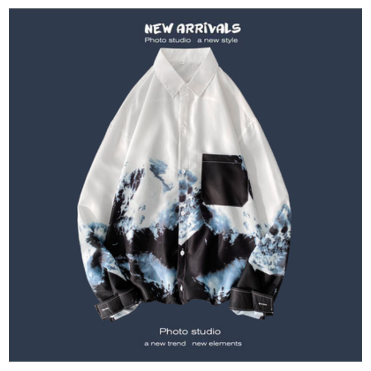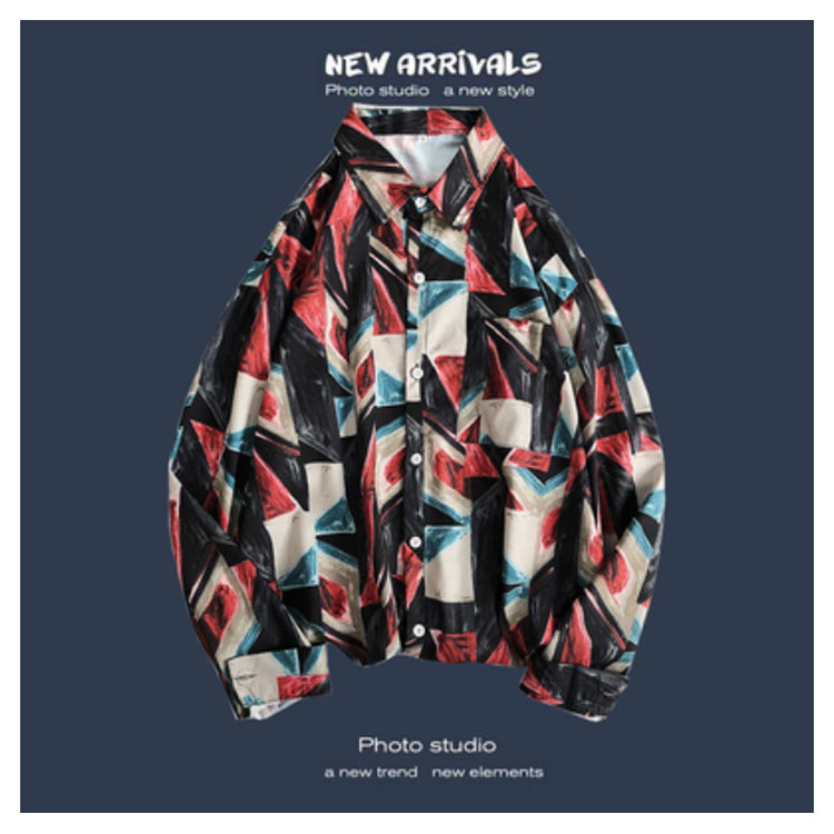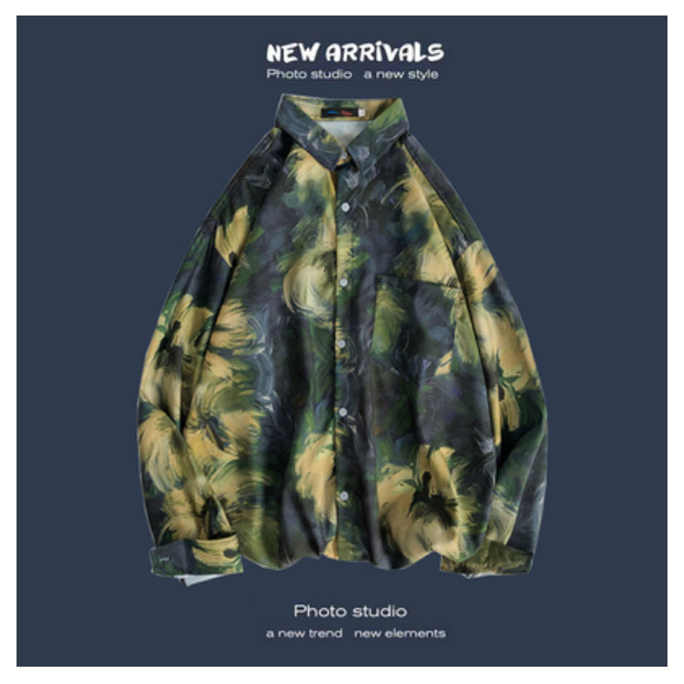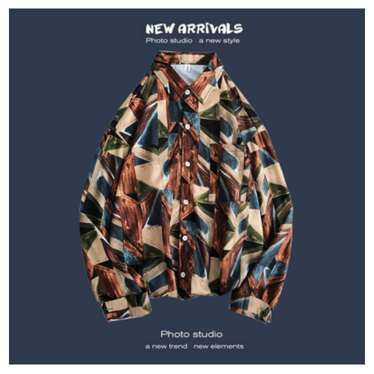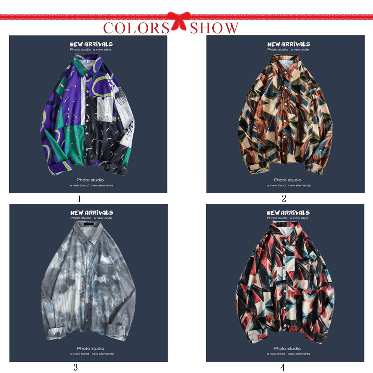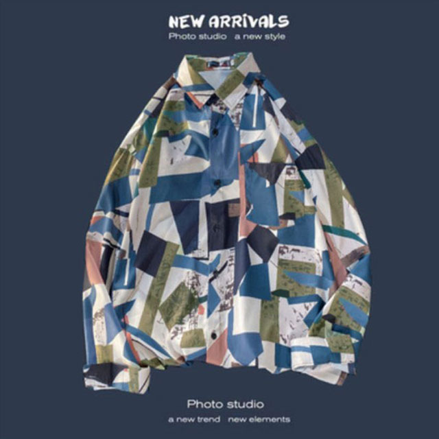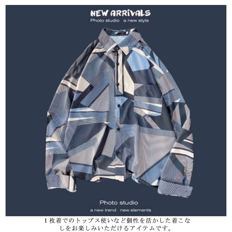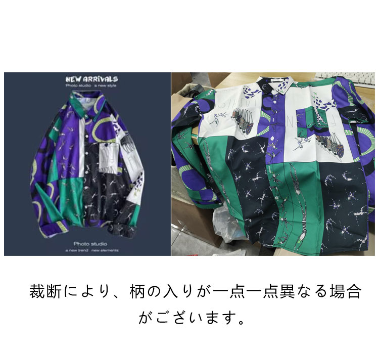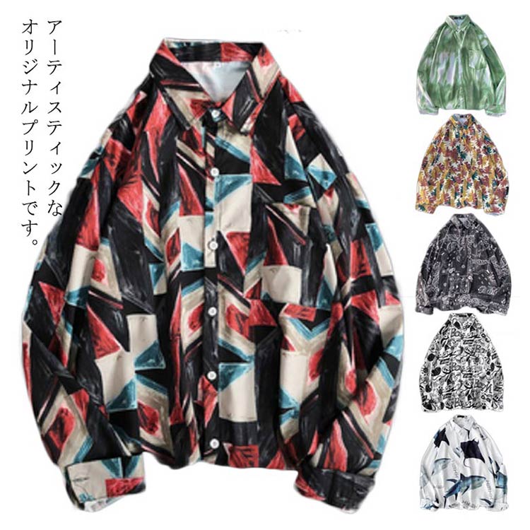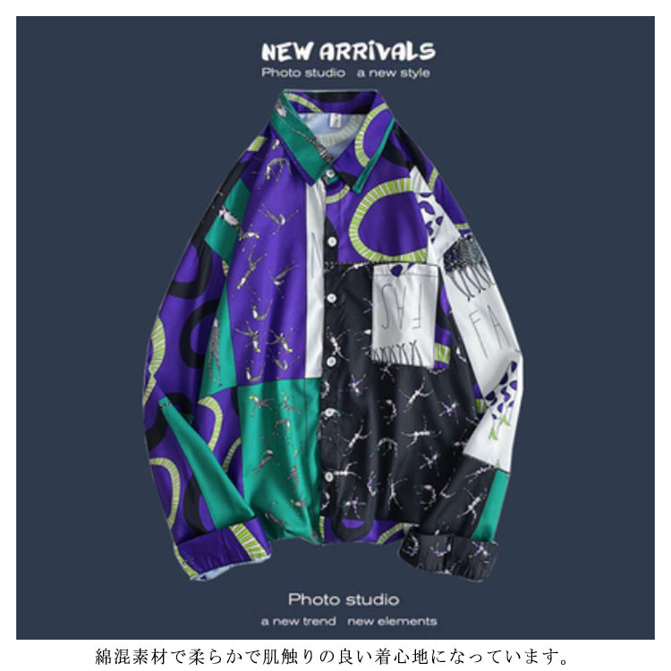 シャツ メンズ カジュアルシャツ メンズ 長袖 トップス 男性用 ワイシャツ Yシャツ 前ボタン 前開き 花柄 パッチワーク 柄シャツ おしゃれ ボヘミアンズ