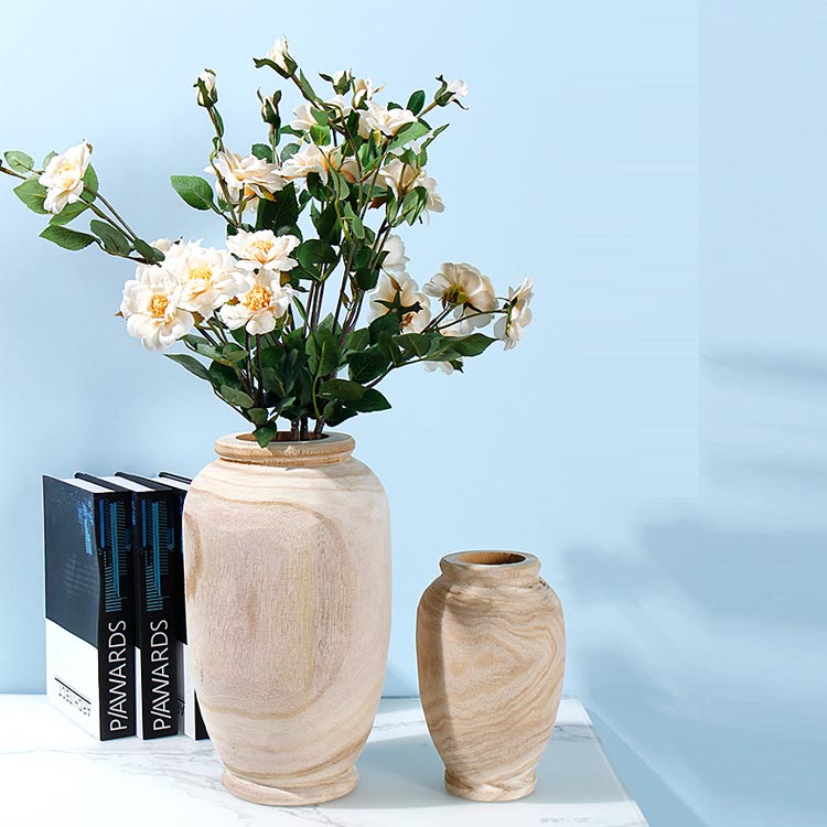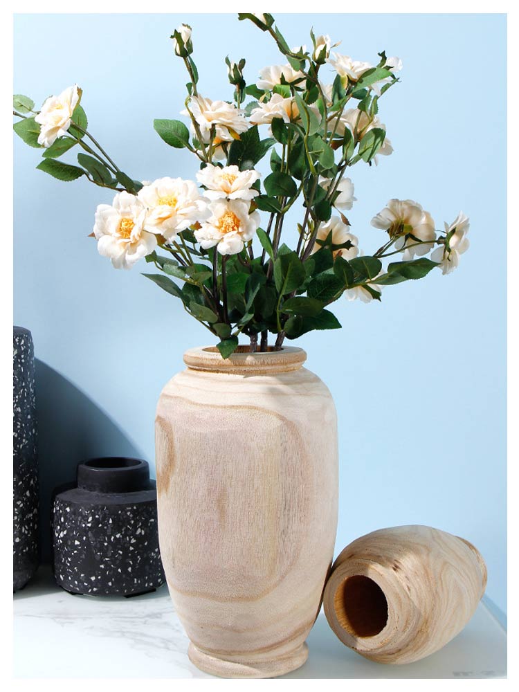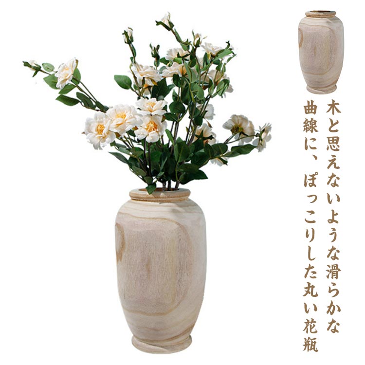 | 木と思えないような滑らかな曲線に、ぽっこりした丸い花瓶。 両手にすっぽりおさまる大きさです。 玄関先やダイニングテーブルにもおすすめです。 | |