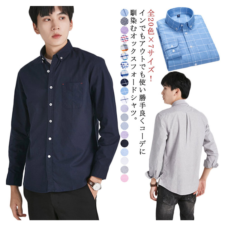 オックスフォードシャツ 綿100% ボタンダウンシャツ 送料無料 シャツジャケット メンズ シャツ 長袖 レギュラーカラー 春秋 無地 チェック ストライプ カジュアルシャツ コットン 軽量 アウター きれいめ 通勤 通学 大きサイズ