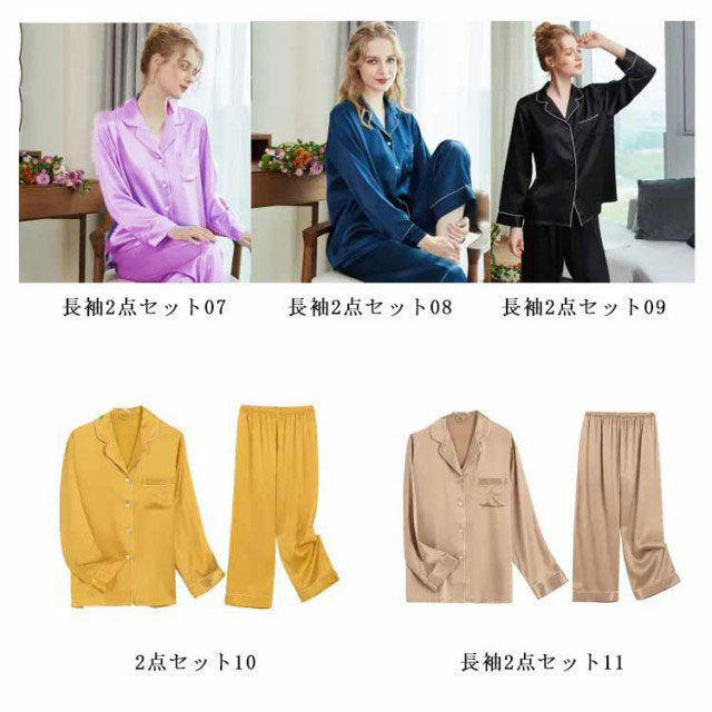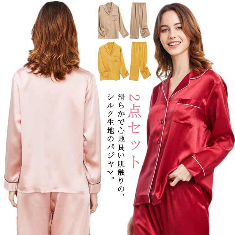シルク パジャマ 上下2点セット レディース 絹 シルクパジャマ 長袖 長ズボン 上下セット 敏感肌 低刺激 乾燥肌 保湿 吸湿 快適 美肌 潤い 光沢 寝間着 ナイトウェア セットアップ オールシーズ かわいい 無地 誕生日 ギフト プレゼント