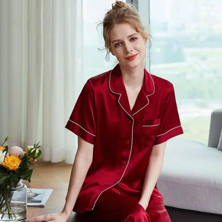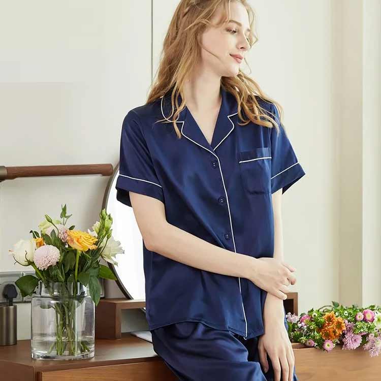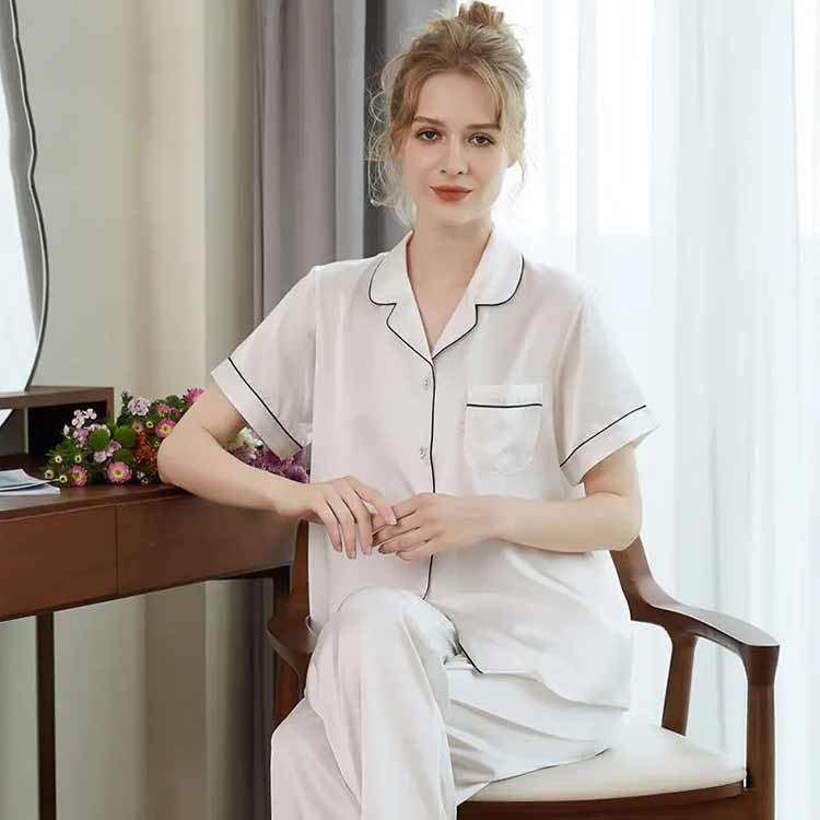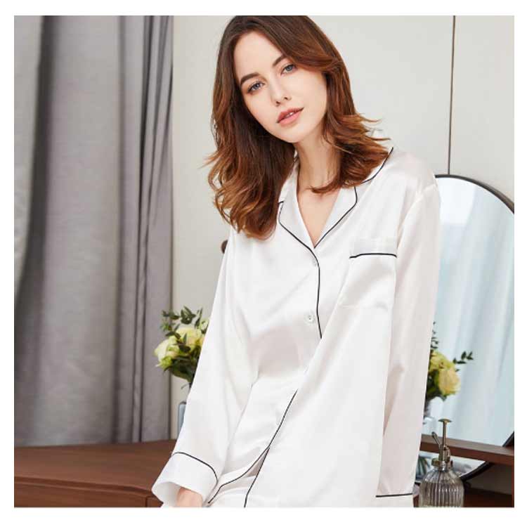 滑らかで心地良い肌触りの、シルク生地のパジャマ。絹は冬は薄いのに空氣を取り込んであたたかく、夏は放湿しながらさらりと乾くので、気持ちよく眠れます。オールシーズンご活用くださいませ♪シルクは、人の肌と同じようにアミノ酸を含むタンパク質から構成されています。そのため、お肌に馴染みやすく、刺激が少ないので、お肌の弱い方にもオススメです。シルクは電気抵抗が少ない素材なので、冬の静電氣も起きにくく、チリやホコリを寄せ付けません。