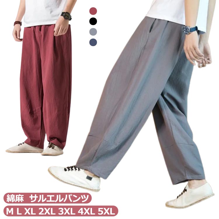 | 【綿麻 サルエルパンツ 】 【M L XL 2XL 3XL 4XL 5XL】 穿きやすい綿麻サルエルパンツ 通気性がよく、吸汗速乾にも優れているので、暑い夏でも快適 ウエスト部分にはゴムが入って、調整紐が付き 無駄な装飾を施さないシンプルなデザインで様々なコーディネートにマッチ | |