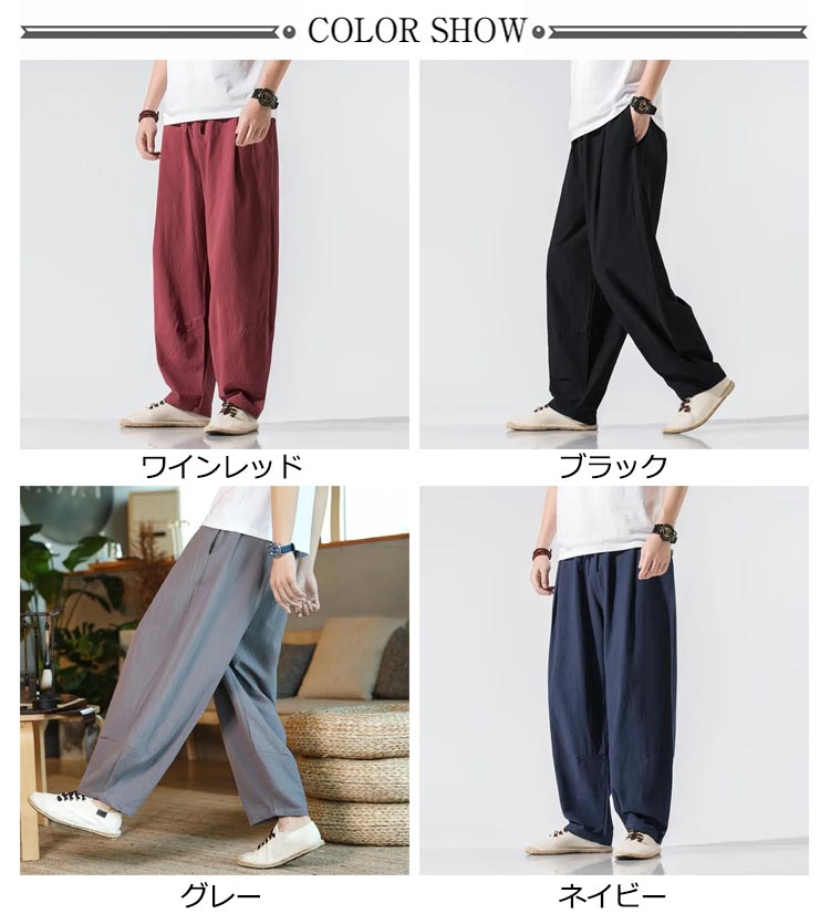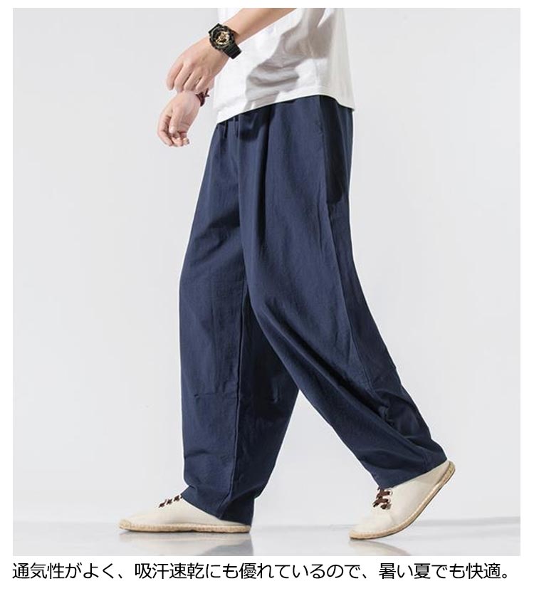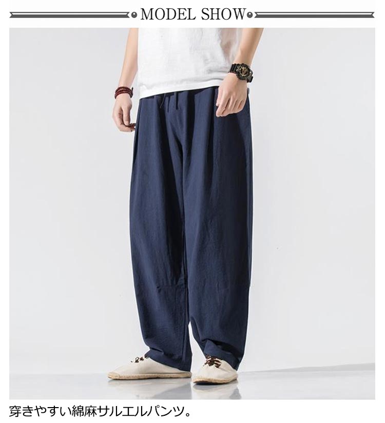 メンズワイドパンツ ワイドパンツ 綿麻 パンツ サルエルパンツ 袴パンツ バギーパンツ ゆったり ビッグシルエット 夏 麻 リネン サルエル 送料無料 男性 ズボン ゆったり ストレート パンツ