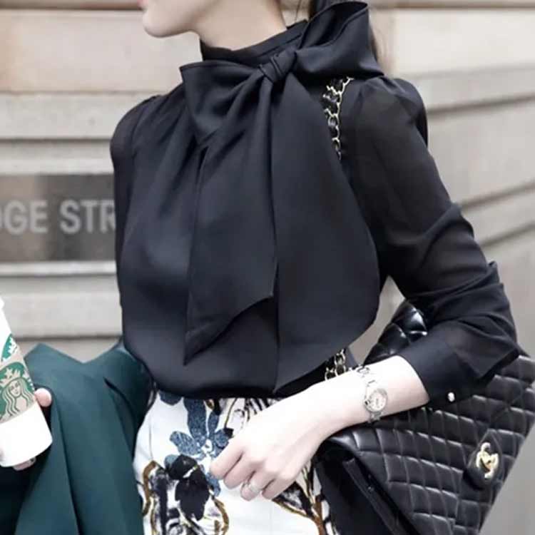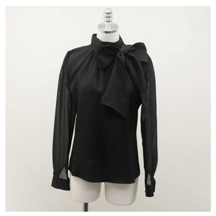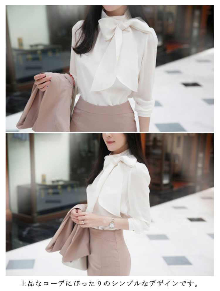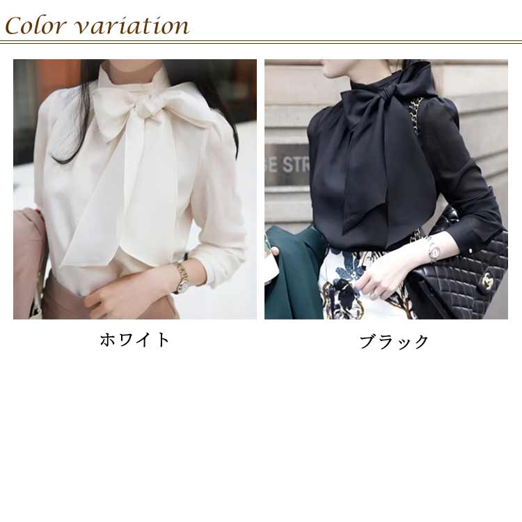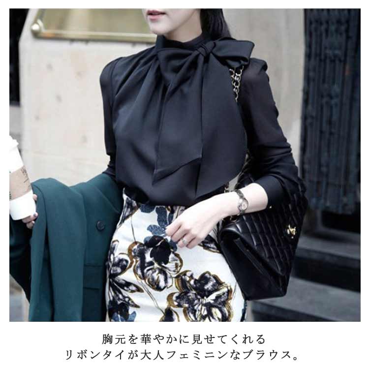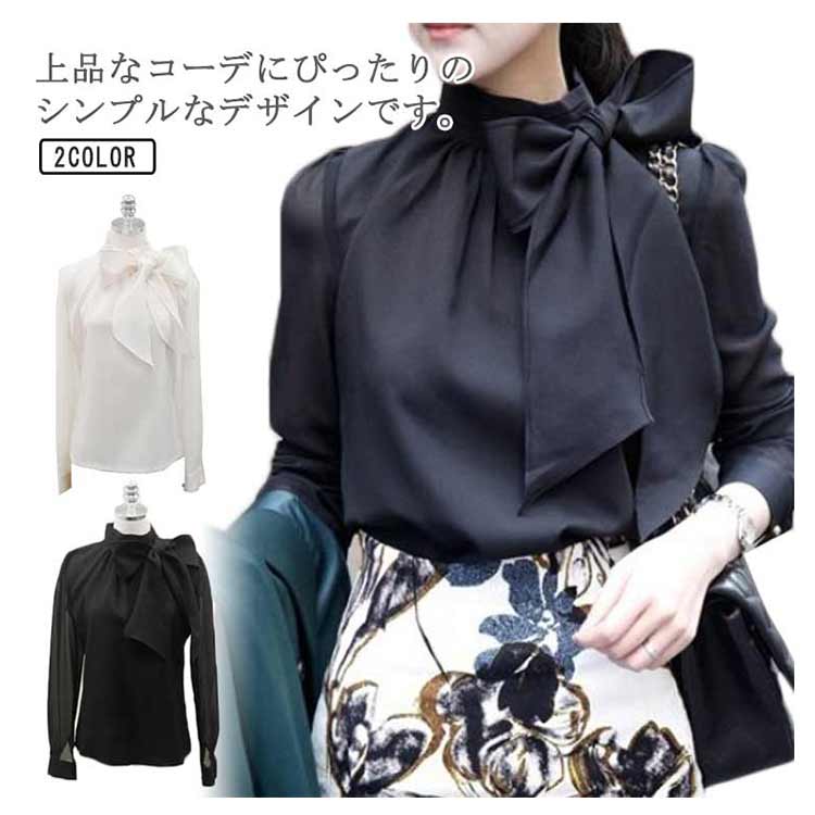 ブラウス ボウタイ シャツ トップス レディース 長袖 オフィスカジュアル シフォン リボン ハイネック 無地 大きいサイズ きれいめ フォーマル 黒 白 ホワイト 韓国 20代 30代 40代 50代 送料無料