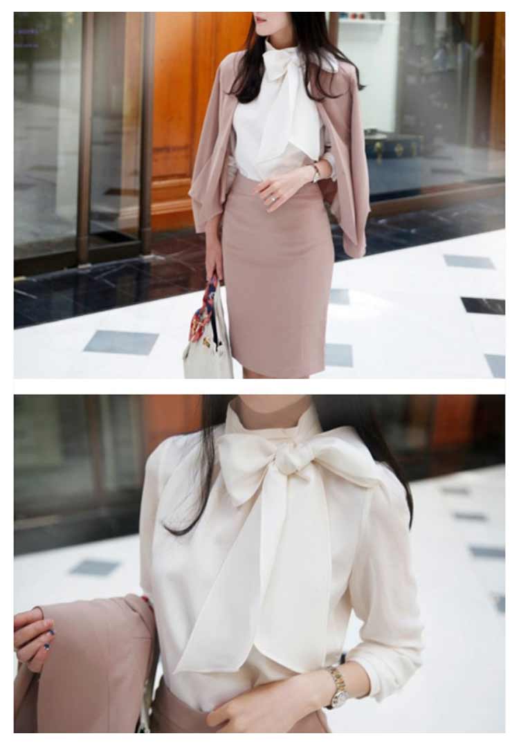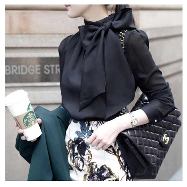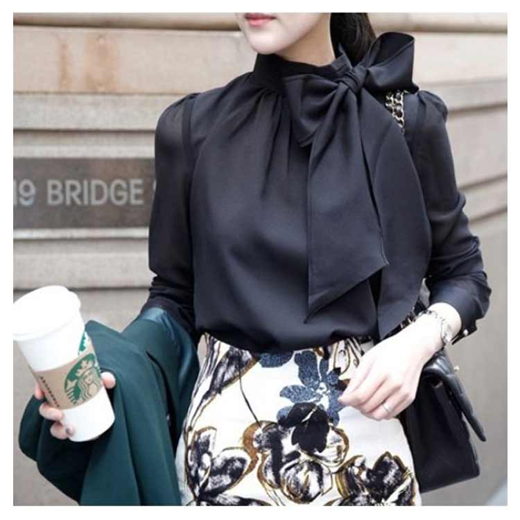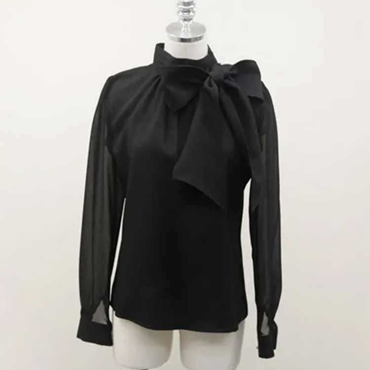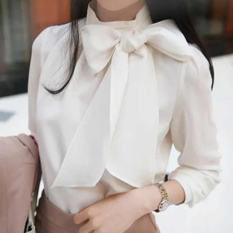 ブラウス ボウタイ シャツ トップス レディース 長袖 オフィスカジュアル シフォン リボン ハイネック 無地 大きいサイズ きれいめ フォーマル 黒 白 ホワイト 韓国 20代 30代 40代 50代 送料無料