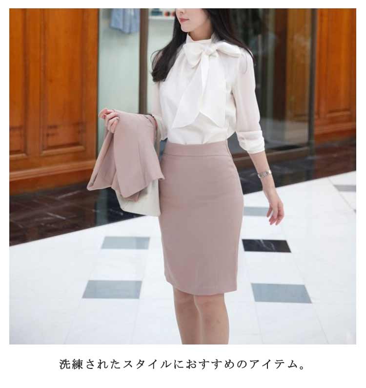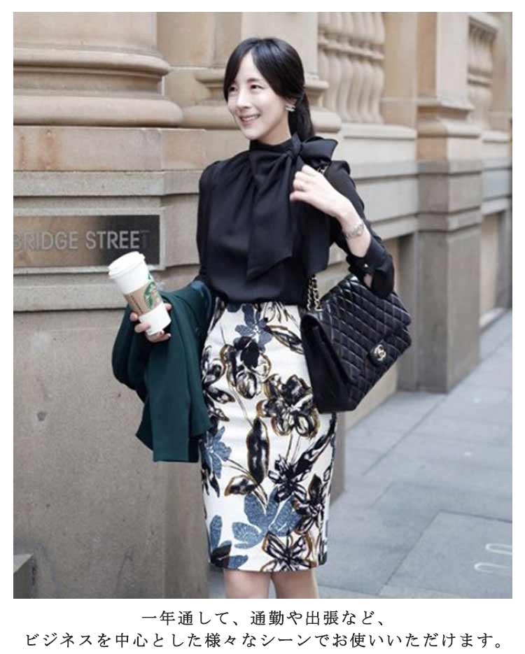 上品なコーデにぴったりのシンプルなデザインです。洗練されたスタイルにおすすめのアイテム。胸元を華やかに見せてくれるリボンタイが大人フェミニンなブラウス。一年通して、通勤や出張など、ビジネスを中心とした様々なシーンでお使いいただけます。