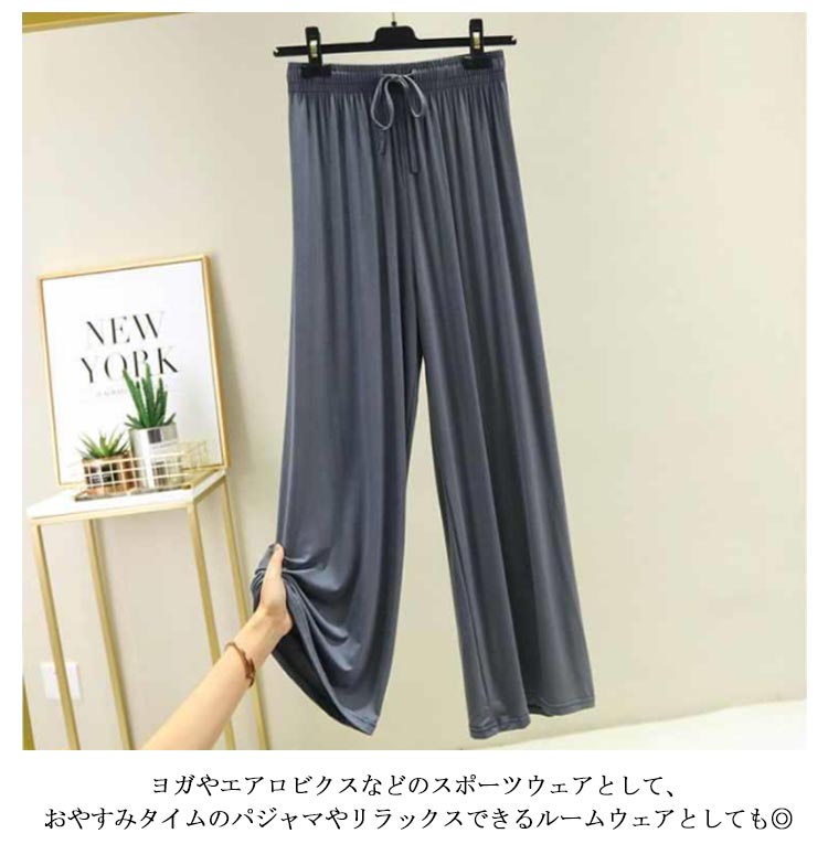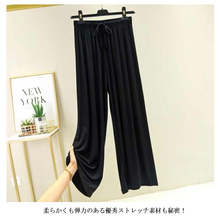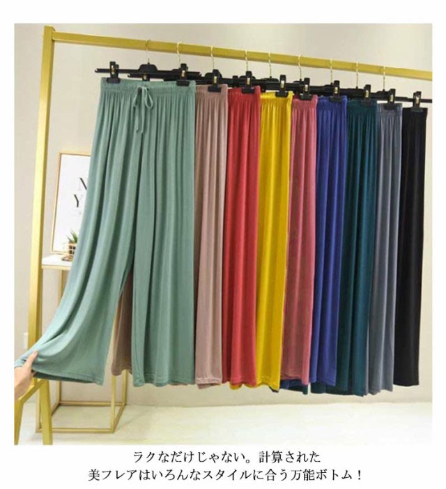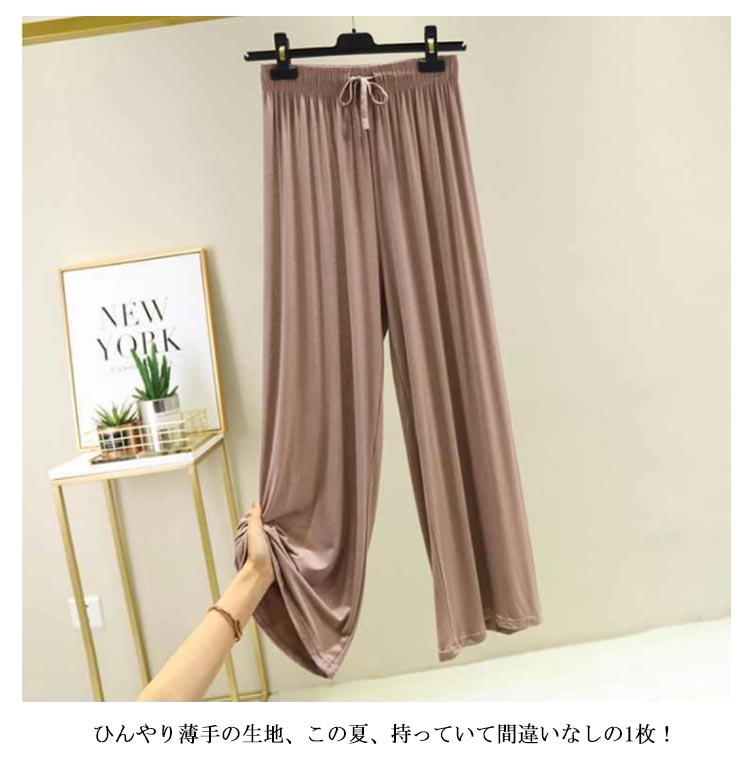 接触冷感 パンツ ワイドパンツ レディース ロング丈 夏 フレアパンツ ガウチョパンツ ヨガパンツ リラックスパンツ ダンスパンツ イージーパンツ ルームウエア 部屋着 ルームパンツ シンプル 無地 楽チン ゆったり 薄手 ひんやり 春 秋 ギフト 送料無料