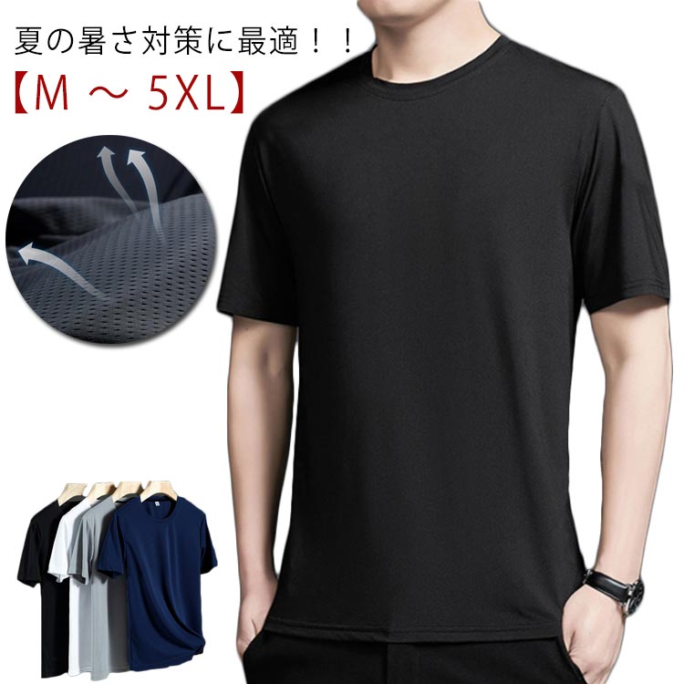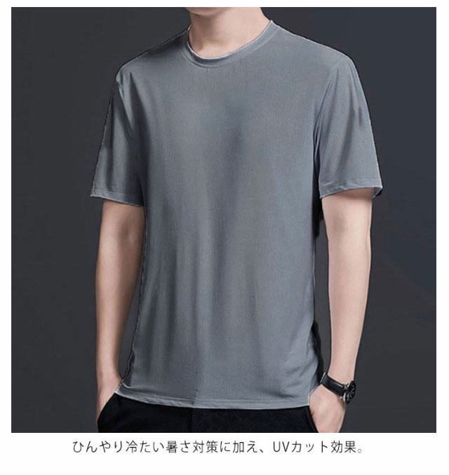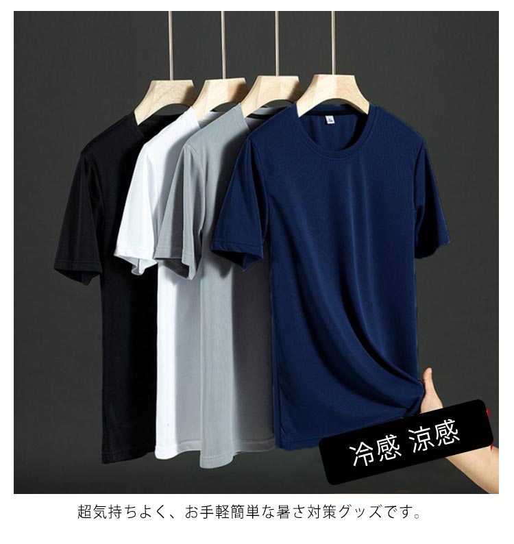 メンズ tシャツ 半袖 クール tシャツ スポーツ ジム ジョギング ランニング サッカー ウェア ゴルフ シャツ スーツ インナー 春物 夏 秋 丸首 ランドネック 冷たい 冷感 涼感 半袖Tシャツ tshirt インナー 夏用 節電 夏 冷たいTシャツ 送料無料 大きいサイズ
