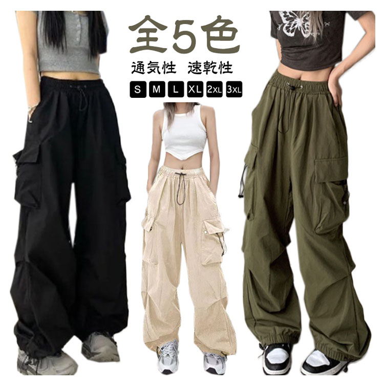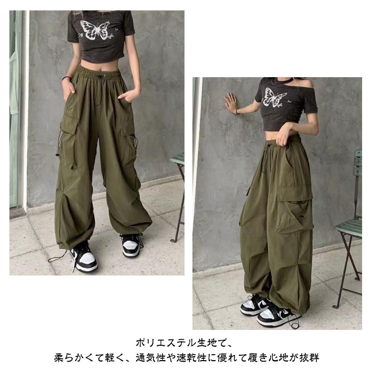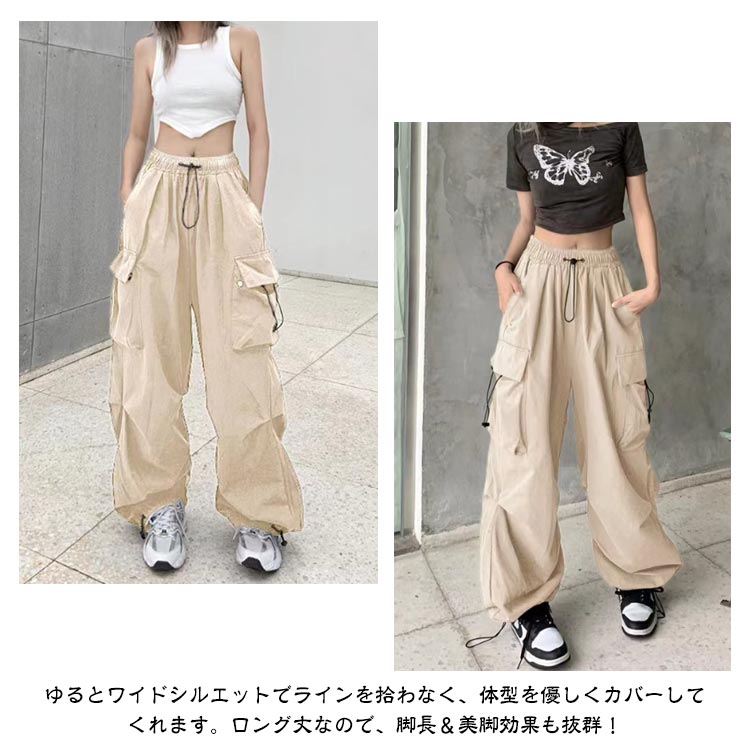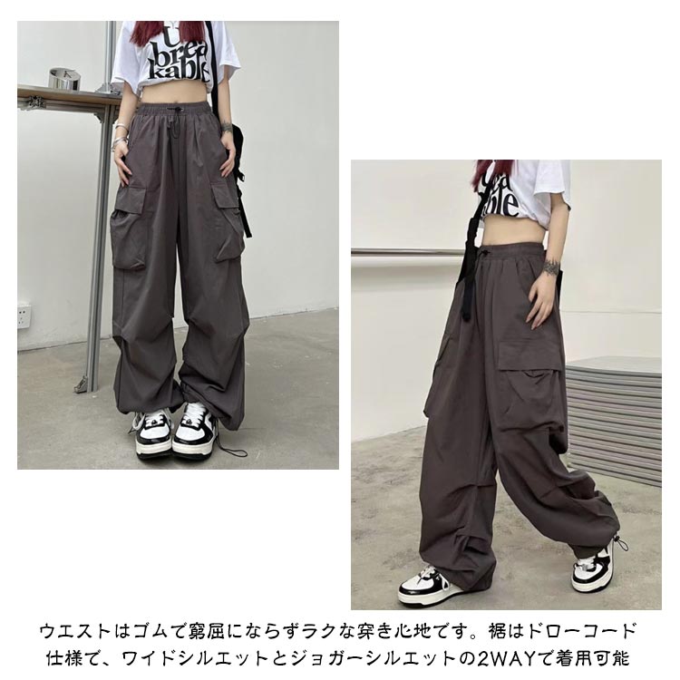 カーゴパンツ レディース ロングパンツ 長ズボン ボトムス かっこいい マニッシュ ダンス 衣装 ヒップホップ ストリート系 イージーパンツ ウエストゴム ワークパンツ ゆったり カジュアル 大きいサイズ
