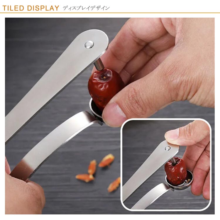 | さくらんぼ、オリーブ、なつめ、サンザシ等の種がスムーズに取れます? 手を触れずに種が出せるので、お子さまに食べさせやすい。 サビにくく丈夫なステンレス製。汚れも落としやすいのでお手入れラクラク。 さくらんぼタルトやジャムなどスイーツづくりにも。 置き方簡単で刃がないのでお子さまも安心して使えます。 丸い台座のくぼみの部分に実を乗せて、ホチキスのように取っ手を握るだけで、実の形を崩さずにさくらんぼやオリーブの種を取ることができます。 果肉を崩さず、すばやく取れます。 チェリーやオリーブをセットしてレバーを握るだけでOK! | |