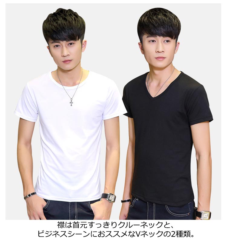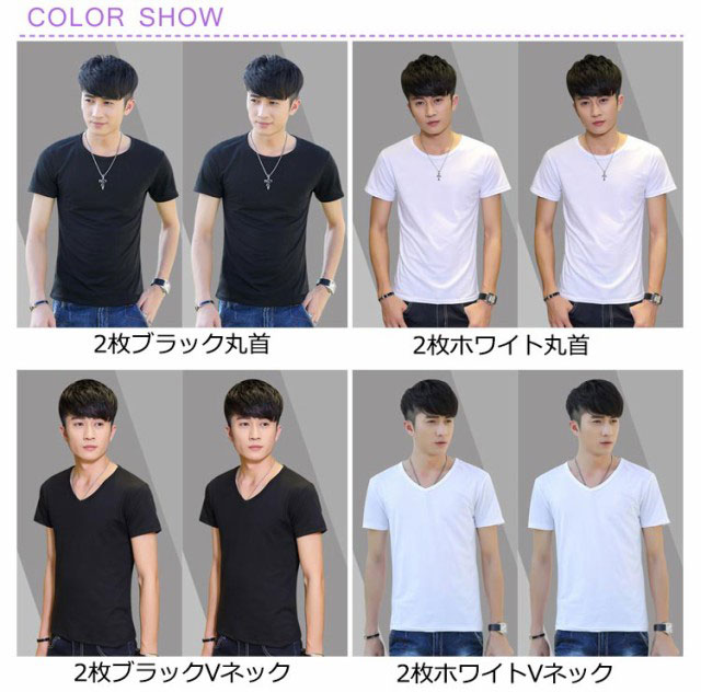 【2枚セット】 インナーシャツ メンズ Vネック 丸首 Tシャツ 2枚組 半袖 クルーネック インナートップス 白Tシャツ 通気性 吸水性 カットソー 大きいサイズ 男性用 アンダーシャツ 下着 肌着 紳士 白 黒 無地 シンプル オフィス 仕事 送料無料