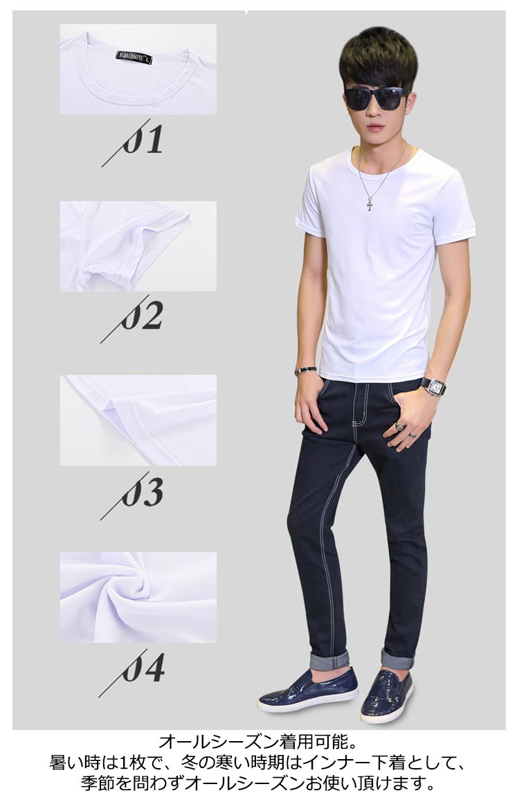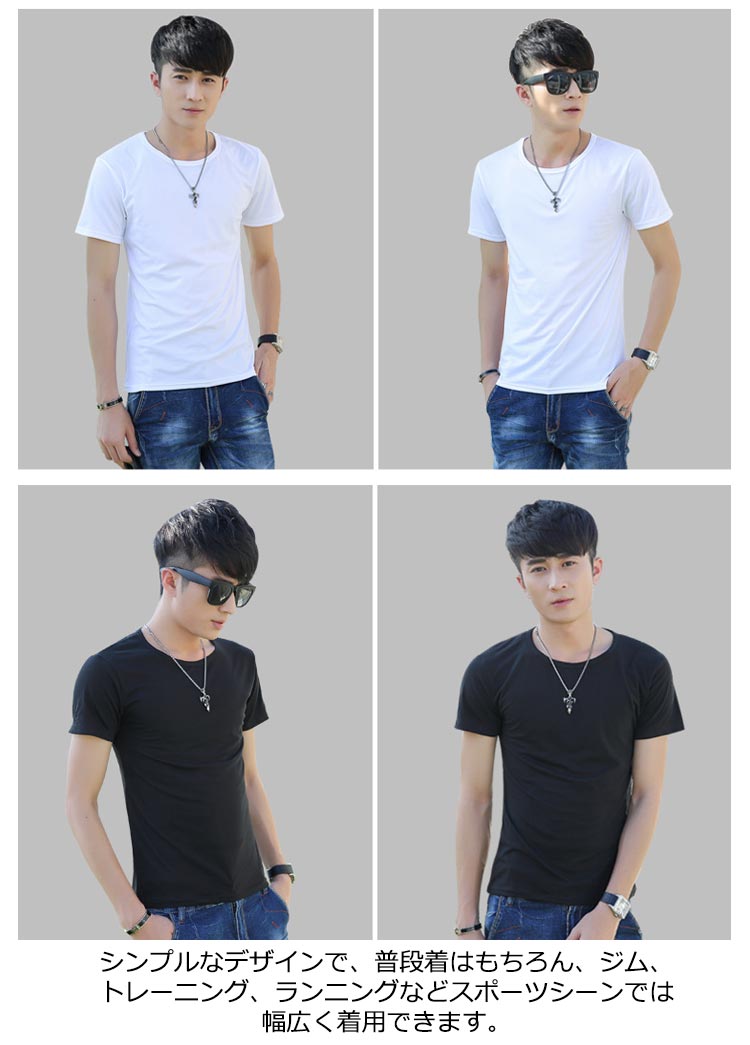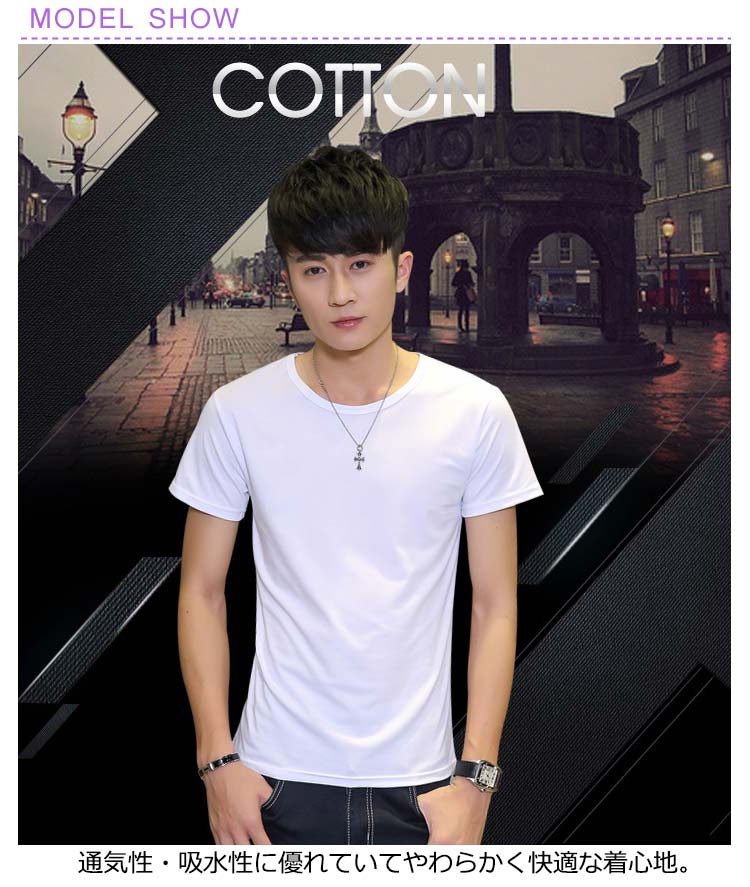 | 優しい肌触りのTシャツです。 通気性?吸水性に優れていてやわらかく快適な着心地。 襟は首元すっきりクルーネックと、ビジネスシーンにおススメなVネックの2種類。 オールシーズン着用可能。暑い時は1枚で、冬の寒い時期はインナー下着として、季節を問わずオールシーズンお使い頂けます。 シンプルなデザインで、普段着はもちろん、ジム、トレーニング、ランニングなどスポーツシーンでは幅広く着用できます。 | |