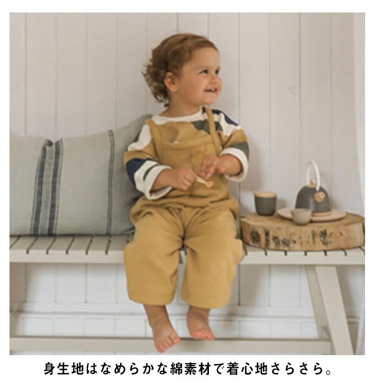 | サッと着られて即おしゃれに見えるベビーサロペット。 身生地はなめらかな綿素材で着心地さらさら。 肩ベルトは伸縮性もありサイズ調整可能。 シャツやカットソーと合わせるだけでコーディネートが完成。 | |