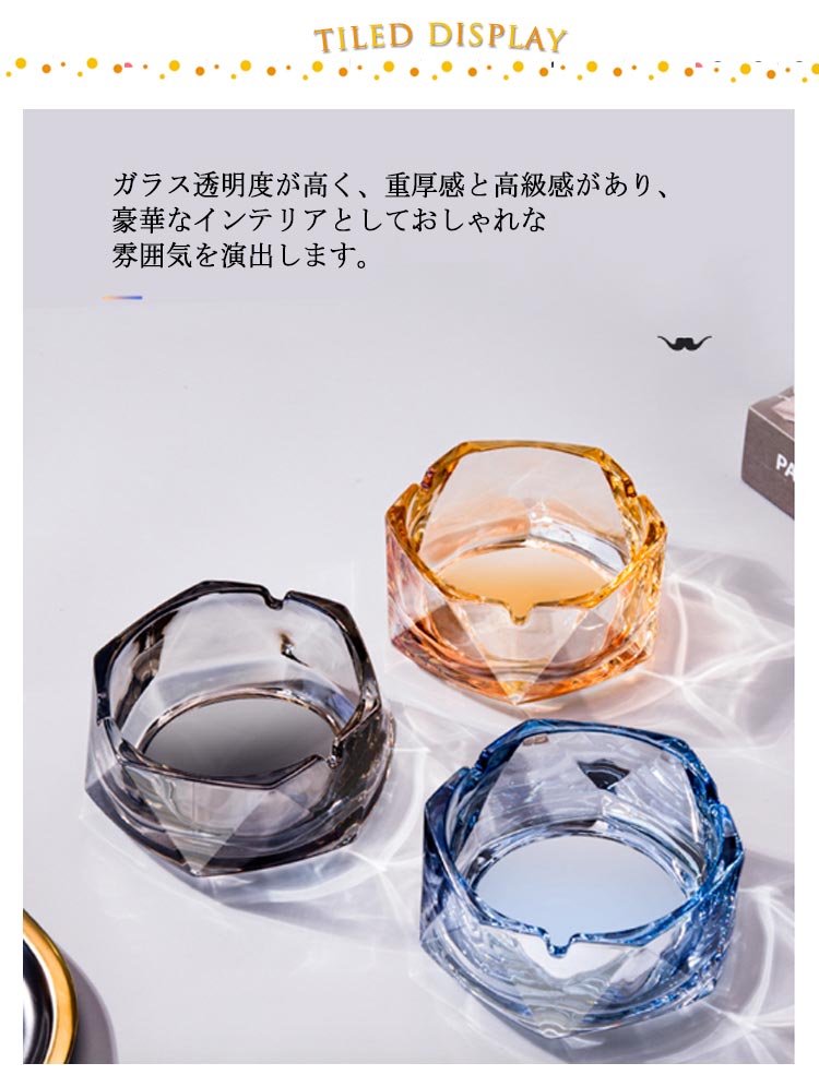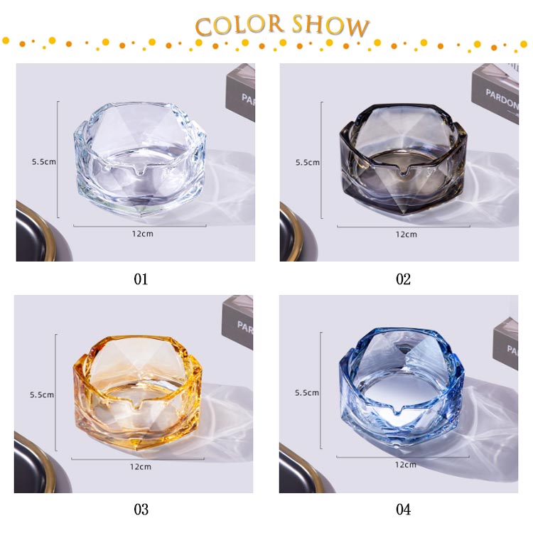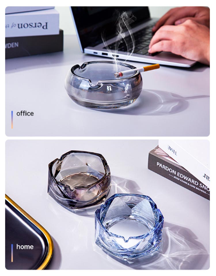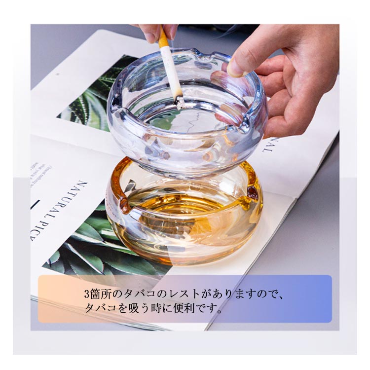 デザインが2タイプから選べる丸型灰皿2個セット。ガラス透明度が高く、重厚感と高級感があり、豪華なインテリアとしておしゃれな雰囲気を演出します。風の中で飛んでいる煤煙がなくても、空中で煙の臭いが効果的に防止し、あなたの家をより快適にします。3箇所のタバコのレストがありますので、タバコを吸う時に便利です。洗いやすい、なめらかな表面で手を切らず、水で直接洗うことができます。洗練されたシンプルなデザインで、安全で無毒で、部屋の装飾にも適していて、喫煙者へのプレゼントにも最適です。