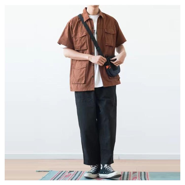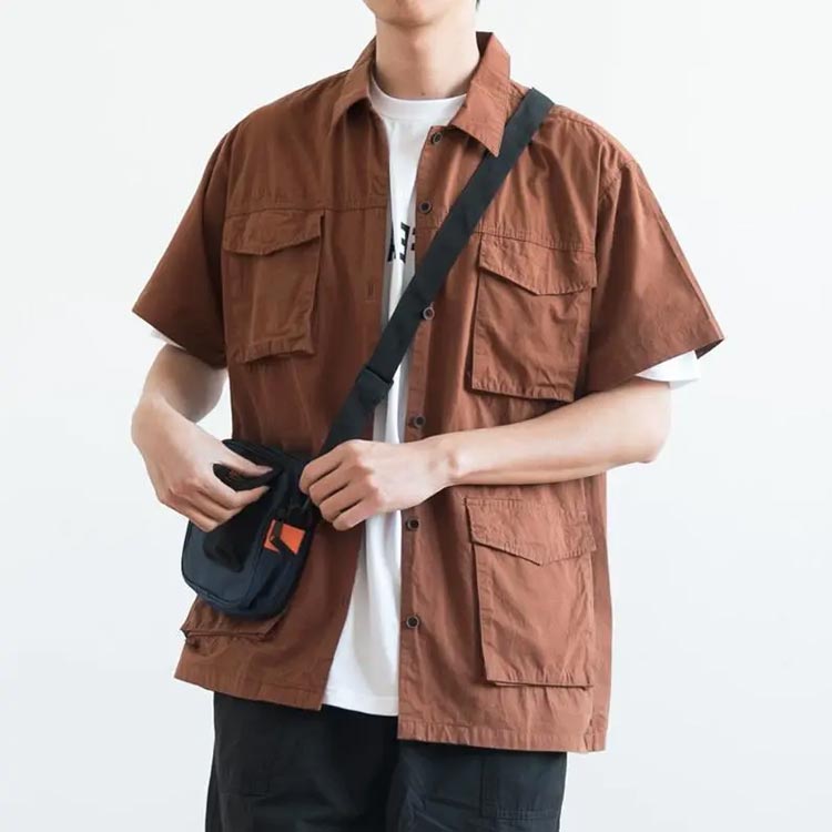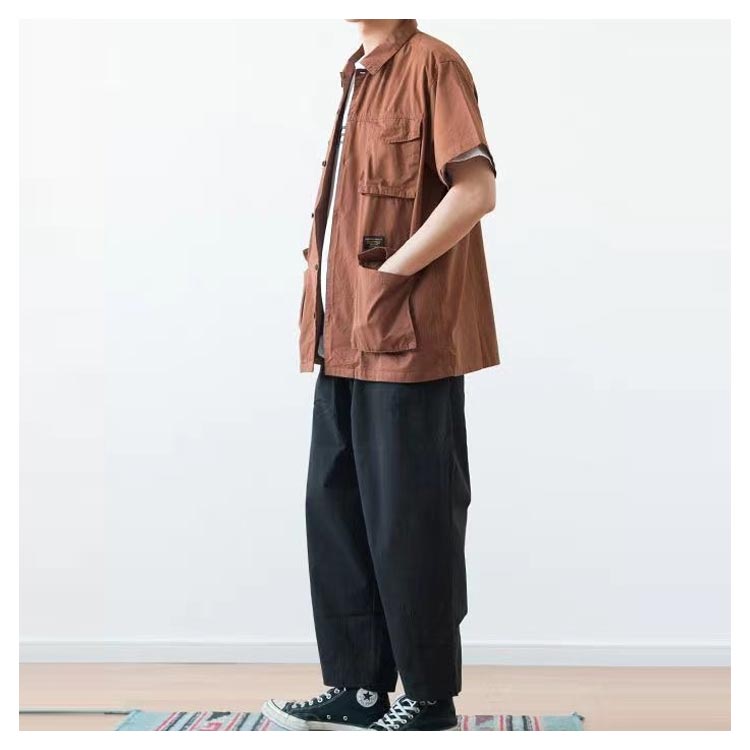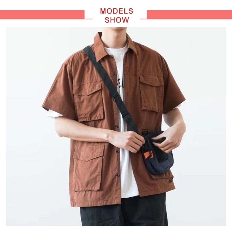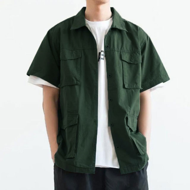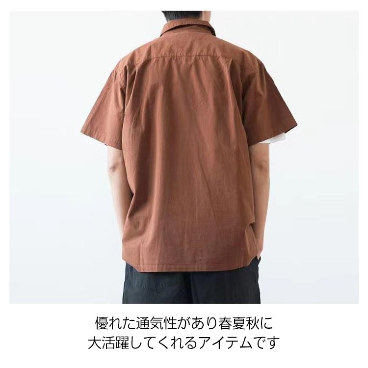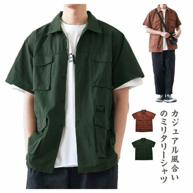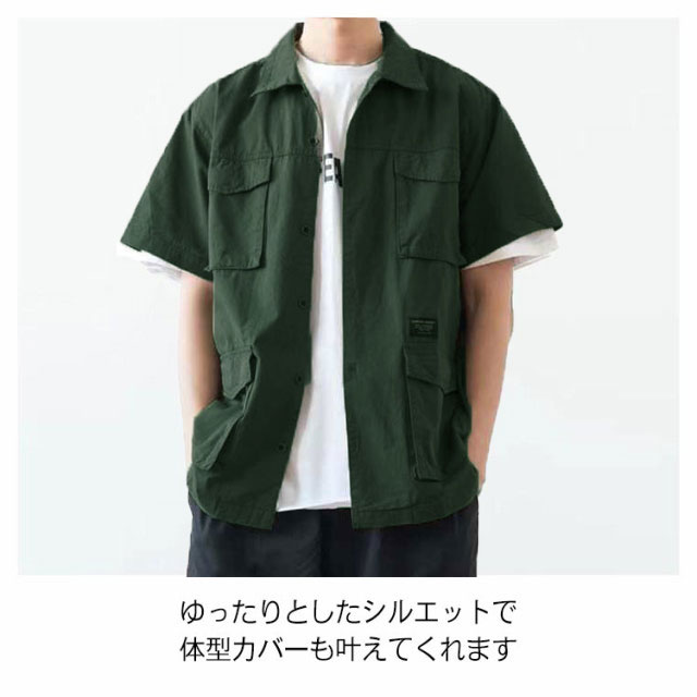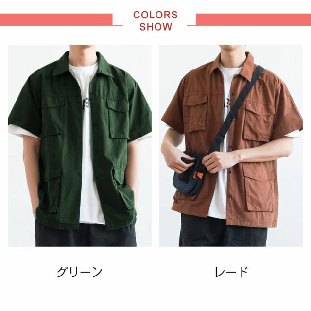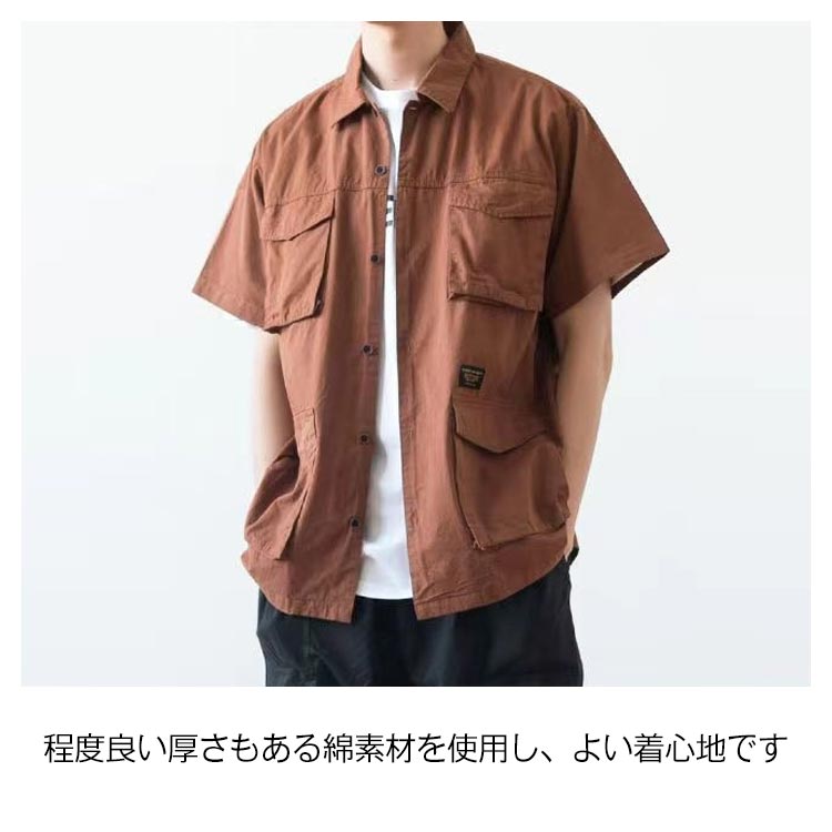 半袖シャツ メンズ カジュアルシャツ 半袖 Tシャツ ワークシャツ ミリタリー 折り襟 ポケット付き トップス 開襟シャツ ゆったり 大きいサイズ 無地 羽織り ライトアウター 春夏秋 カジュアル シンプル おしゃれ B系 お兄系 コットン 夏服 送料無料