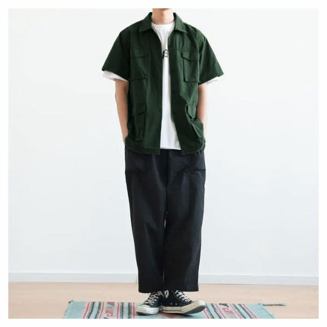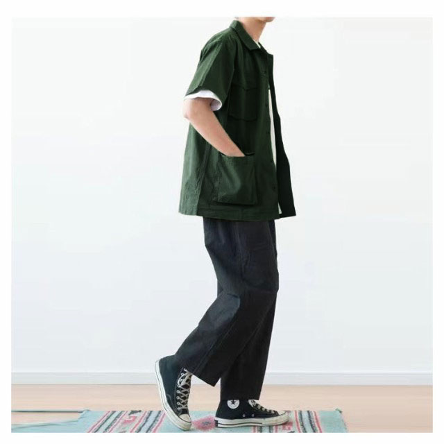 | カジュアル風合いのミリタリーシャツ。 程度良い厚さもある綿素材を使用し、よい着心地です。 優れた通気性があり春夏秋に大活躍してくれるアイテムです。 ゆったりとしたシルエットで体型カバーも叶えてくれます。 フロントボタン仕様なので軽い羽織としてもお使いいただけます。 どんなアイテムとも相性抜群なのでコーデの幅もぐーんと広がるマルチなアイテム! | |