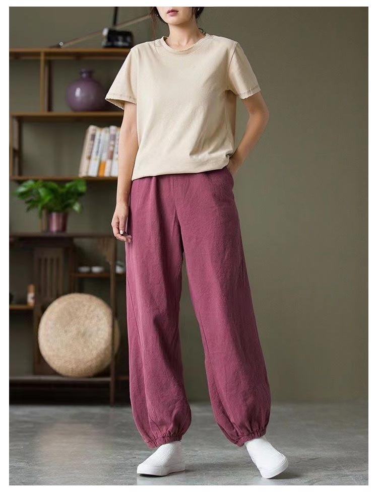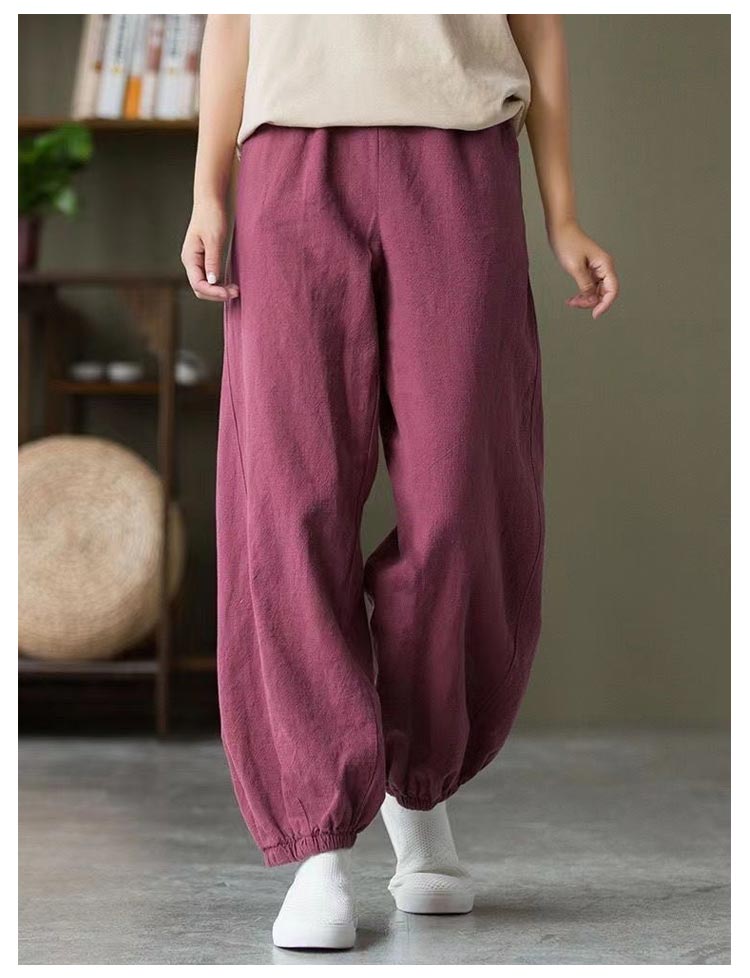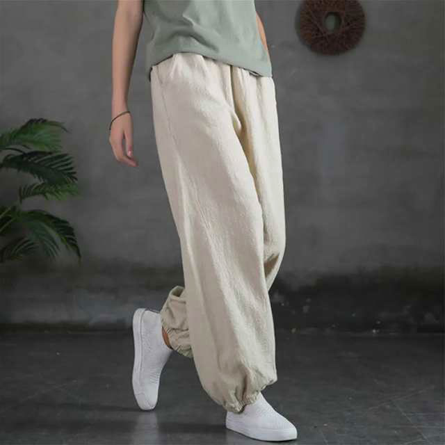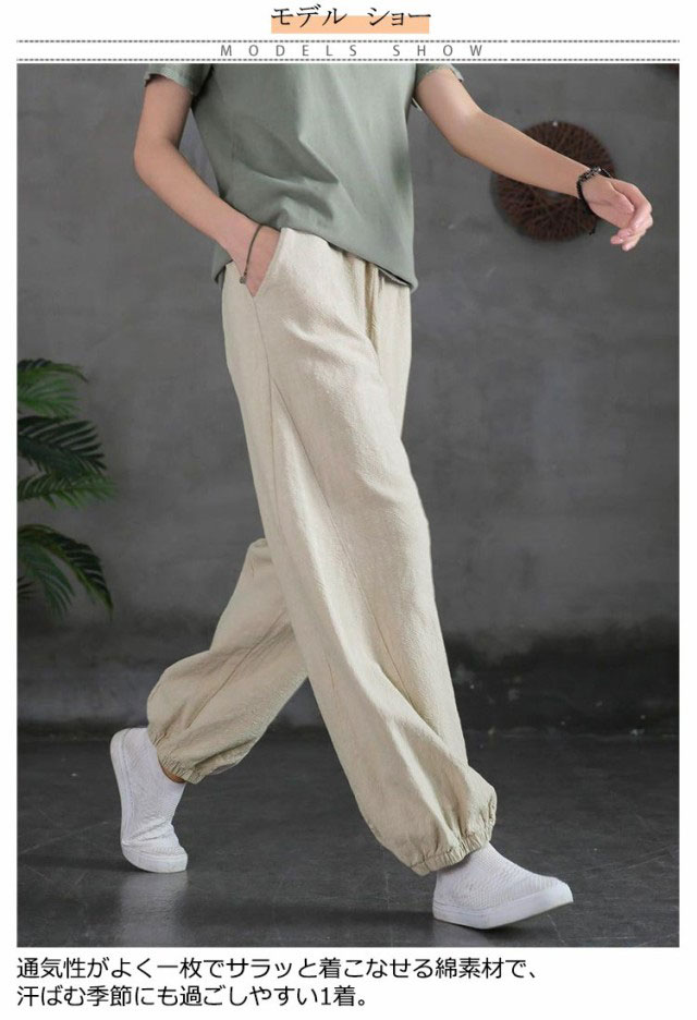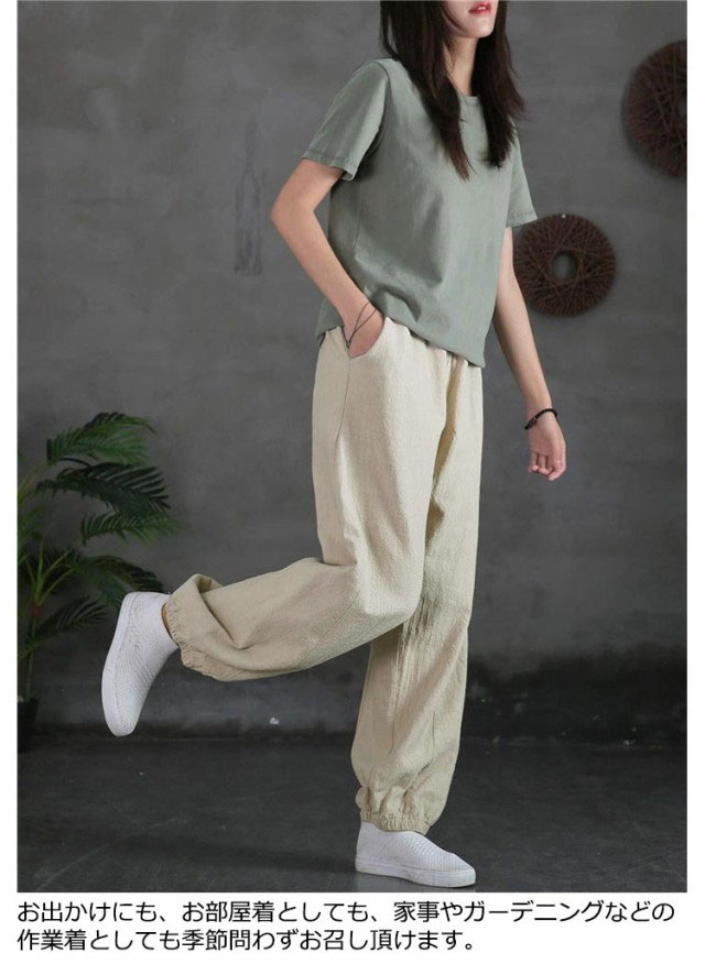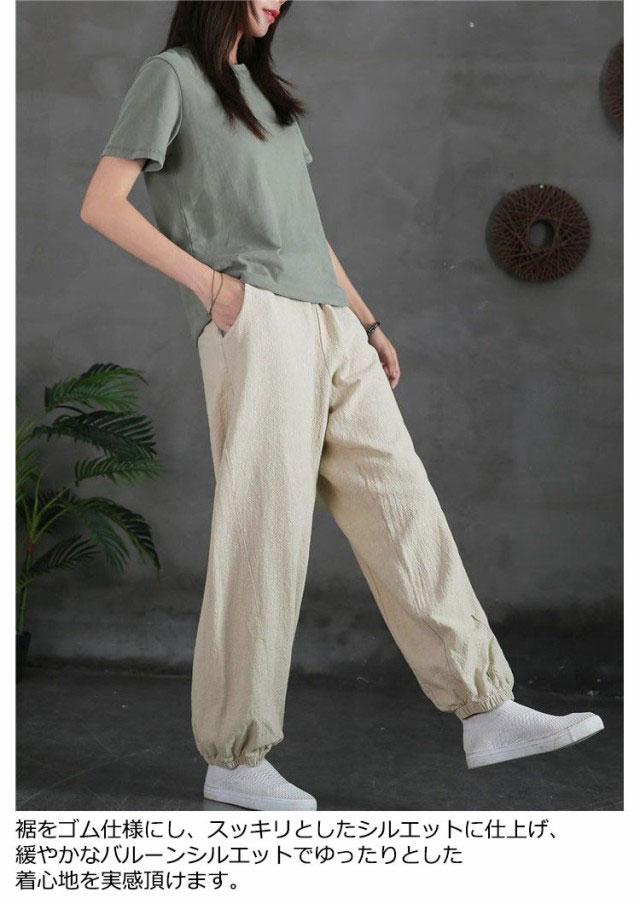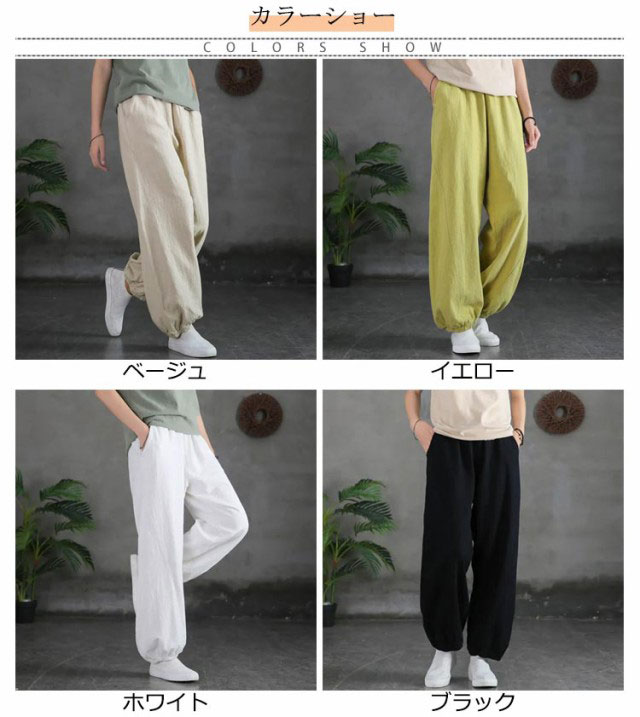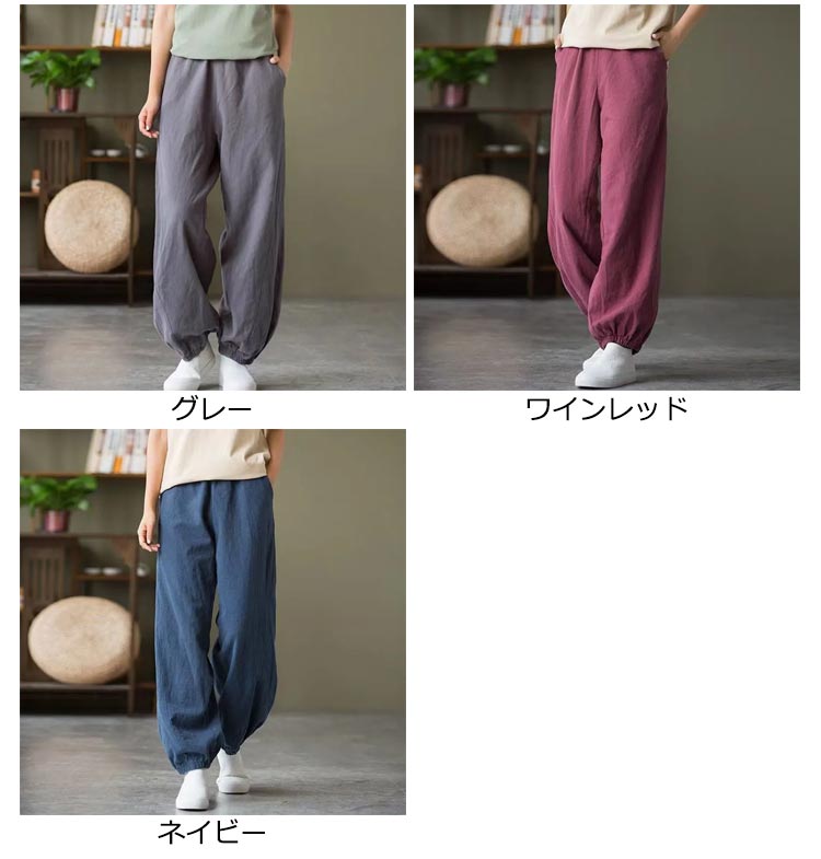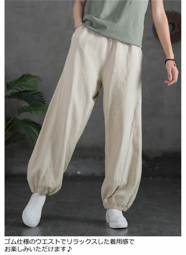 バルーンパンツ レディース 夏 ゆったり ロングパンツ イージーパンツ カラーパンツ ゆったり リラックスパンツ 綿 コットン ハロンパンツ リネン調パンツ 涼しい 薄手 通気性 部屋着 ウエストゴム ポケット付き 無地 大きいサイズ 春 夏 美脚 おしゃれ カジュアル 送料無料