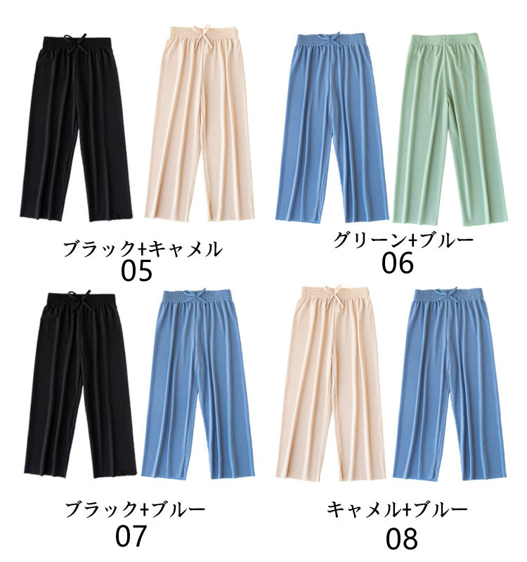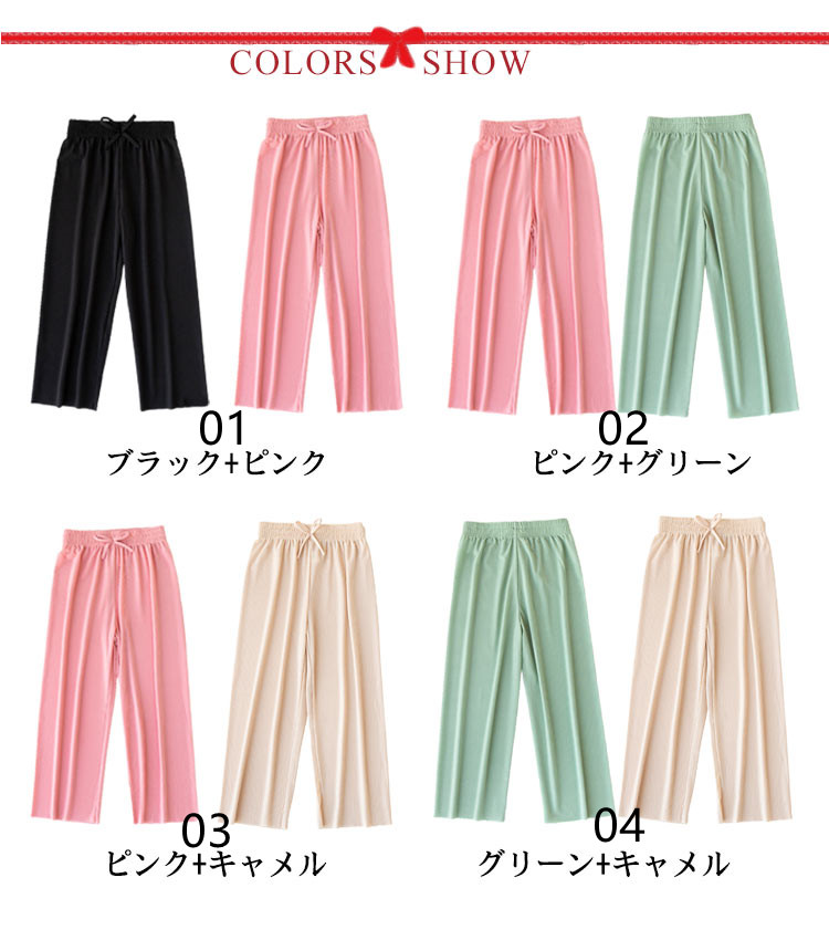 2枚セット キッズ 冷感 ワイドパンツ プリーツパンツ ロングパンツ ボトムス ガールズ 女の子 子供服 ゆったり 涼しい ダンスパンツ イージーパンツ ガウチョパンツ ストレッチ ルームウェア ヨガパンツ 春 夏 秋 部屋着 リラックス