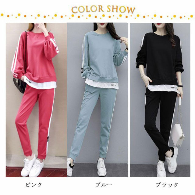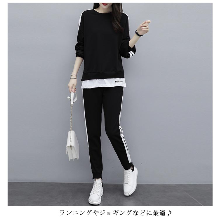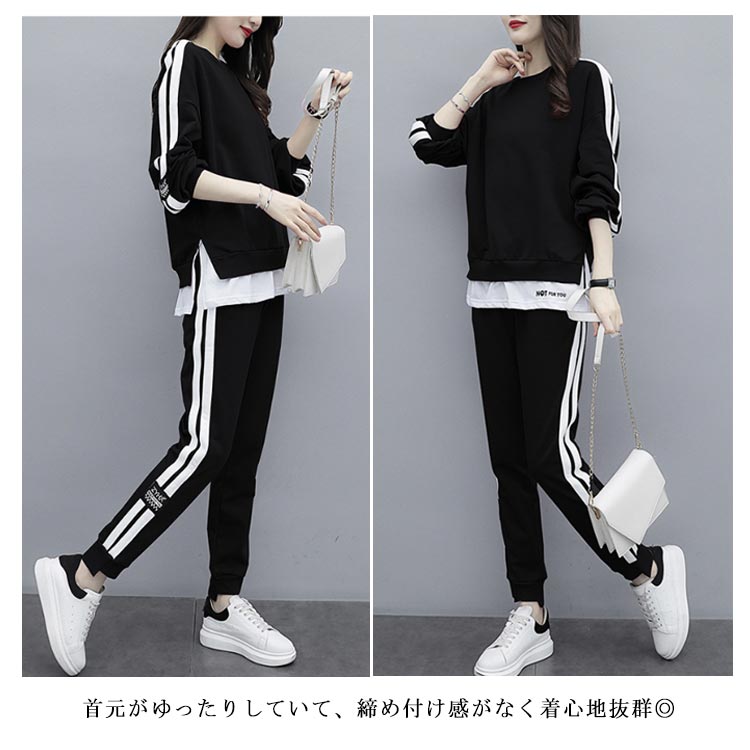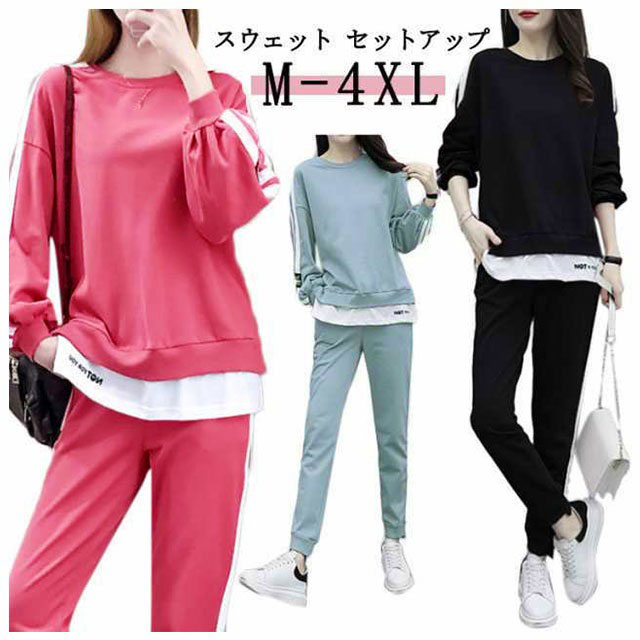 スウェット セットアップ ジャージ 長袖 レディース 部屋着 上下 セット 大きいサイズ スウェットパンツ ルームウェア ライン 大きい 薄手 黒 トップス 修学旅行 入院 産後 旅行 スポーツウェア パンツ 春 秋 冬 秋冬 夏