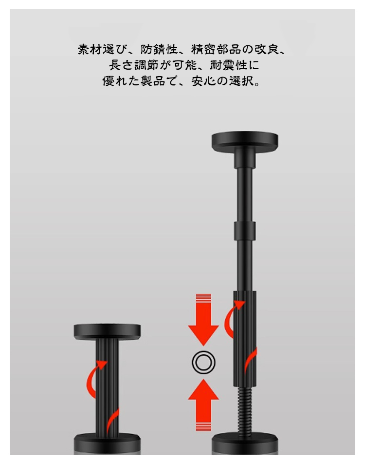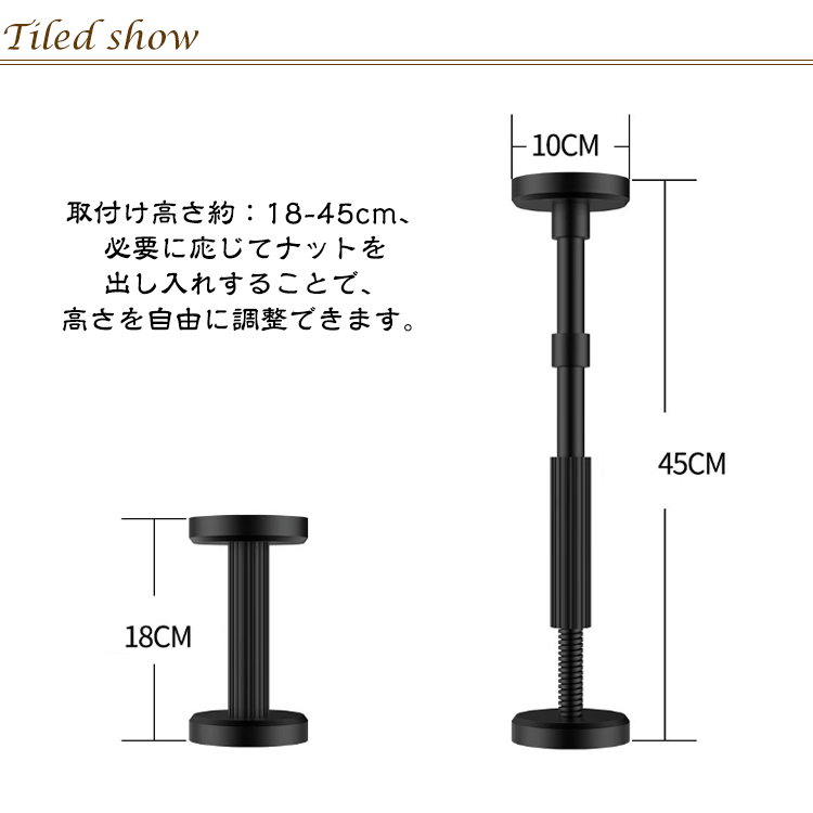 取付け高さ約:18-45cm、必要に応じてナットを出し入れすることで、高さを自由に調整できます。【高品質の素材】家具転倒防止伸縮棒高分子合成樹脂とステンレス鋼で構成、防水・防湿、耐食性。圧縮重量200kg×2本、安心の品質。【家具転倒防止 突っ張り棒】素材選び、防錆性、精密部品の改良、長さ調節が可能、耐震性に優れた製品で、安心の選択。【取り付け簡単】つっぱり式で取り付けカンタンな耐震ポール。耐久性に優れています。次に、ネジを緩めたり増やしたりして長さを調整し、しっかりと固定します。女性でも簡単に設置できる。【家具転倒防止器具】引き出し、テーブル、ドレッサー、ベッドサイドテーブル、棚、冷蔵庫、本棚、キャビネット、その他の場所で広く使用できます。地震発生時に家具の転倒を防ぎ、被害を最小限に抑える防災グッズです。