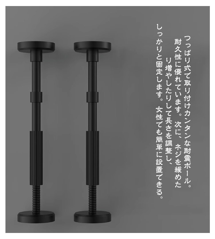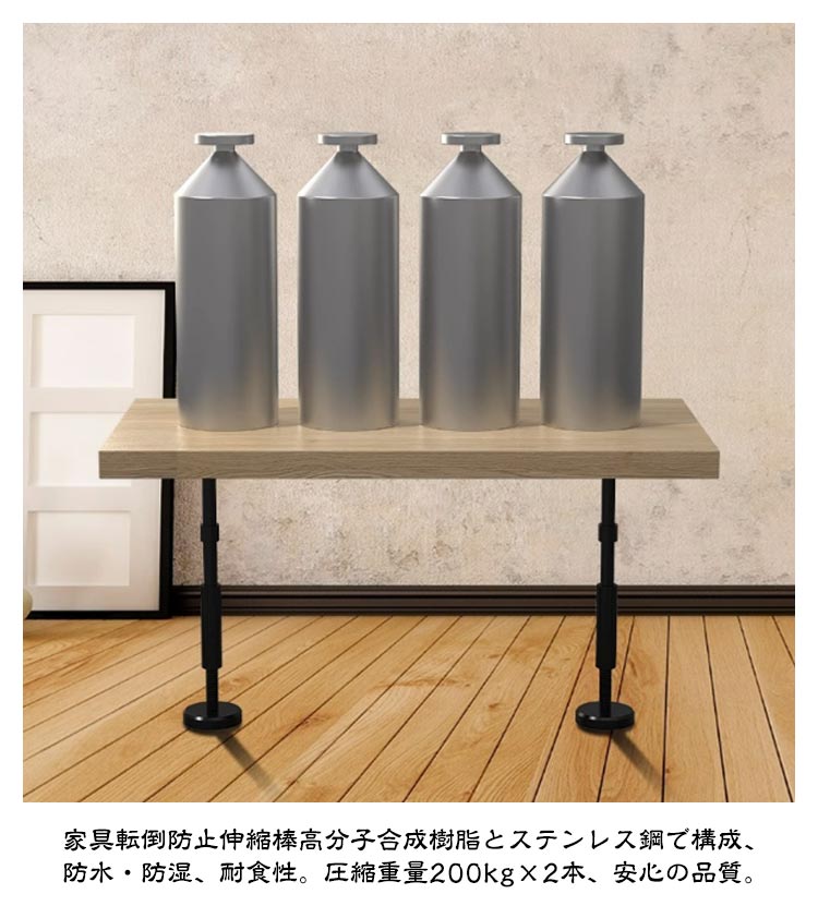 【2本セット】転倒防止 突っ張り棒 耐震ポール 伸縮 強力耐震 突っ張り棒 調整可能 防災グッズ 取付高さ18-45cm 耐荷重200kg ナイロン 耐震対策 つっぱり棒 防災措置 タンス テーブル 本棚 冷蔵庫 食器棚 家具固定用 狭い隙間用 防災グッズ