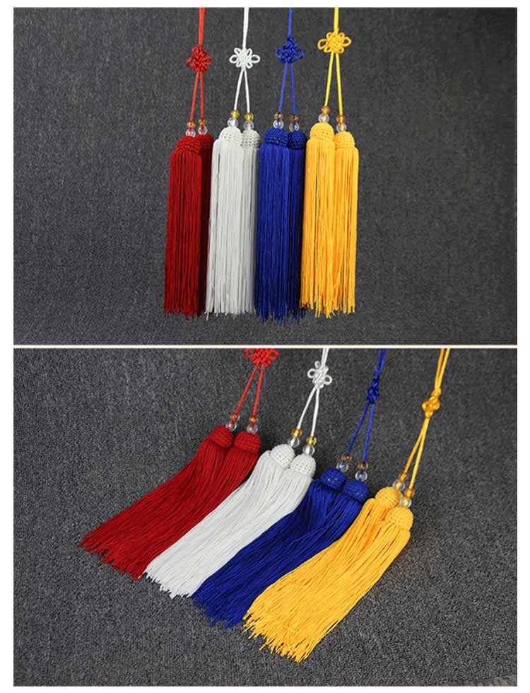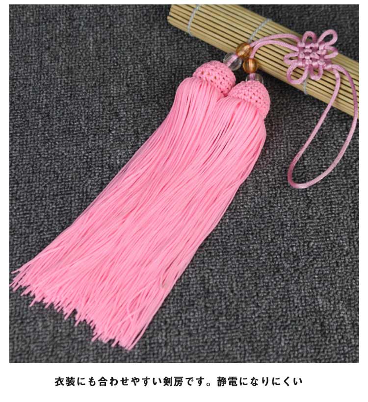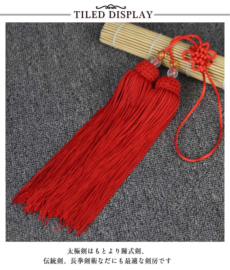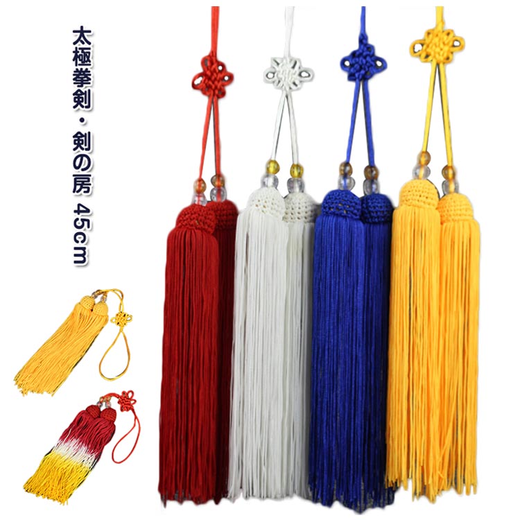 太極拳剣・剣の房 45cm太極剣はもとより陳式剣、伝統剣、長拳剣術なだにも最適な剣房です衣装にも合わせやすい剣房です。静電になりにくい