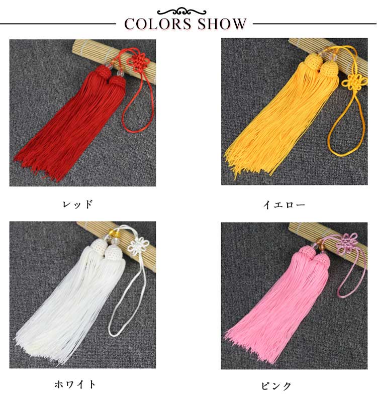 太極拳剣 剣の房 単色 ふさ 剣穂 剣房 剣 双剣 おしどり剣 全長45cm 伝統拳 長拳 団体演武 功夫 カンフー 白 黄 赤 黒 青