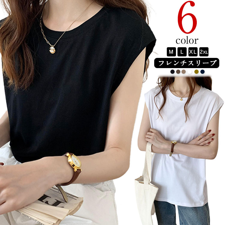 【フレンチスリーブ】【M-2XL】【6color】デイリー使いしやすいシンプルなデザインのカットソー。ノースリーブより少し長いフレンチスリーブのお袖がすっきり見せを叶えます。さり気ない肌見せで女性らしくフェニミンな印象に。ルーズとしたワイドな身幅は体のラインを拾いにくく体型カバーにも◎着るだけで女性らしい大人のフレンチスリーブ一枚ではもちろん重ね着も楽しめちゃう、何枚も欲しくなるマストアイテムです。