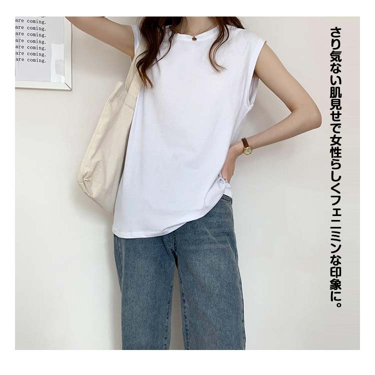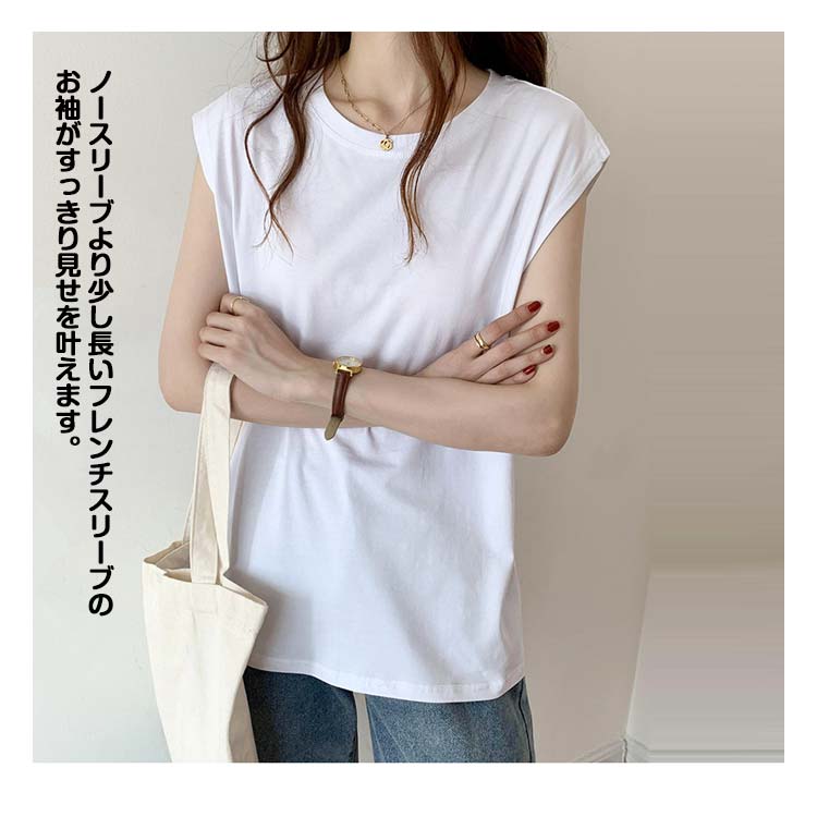 カットソー レディース トップス Tシャツ ノースリーブ クルーネック フレンチスリーブ 丸首 インナー プルオーバー タンクトップ 体型カバー ゆったり 夏服 ロングtシャツ ロングT 大きいサイズ おしゃれ カジュアル