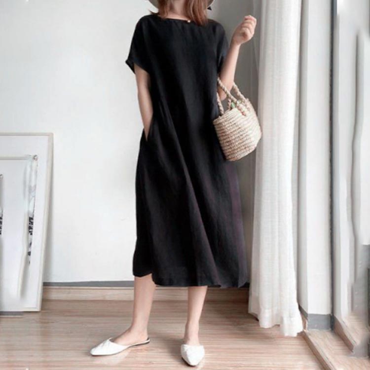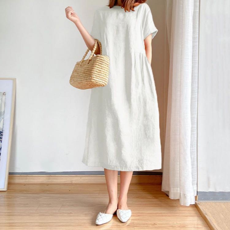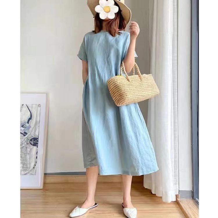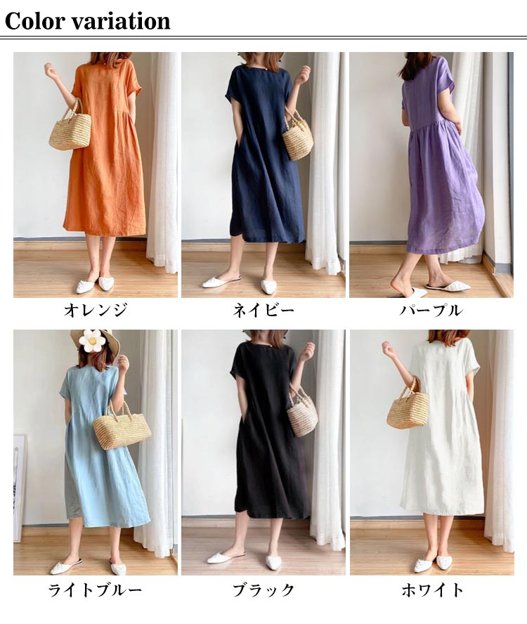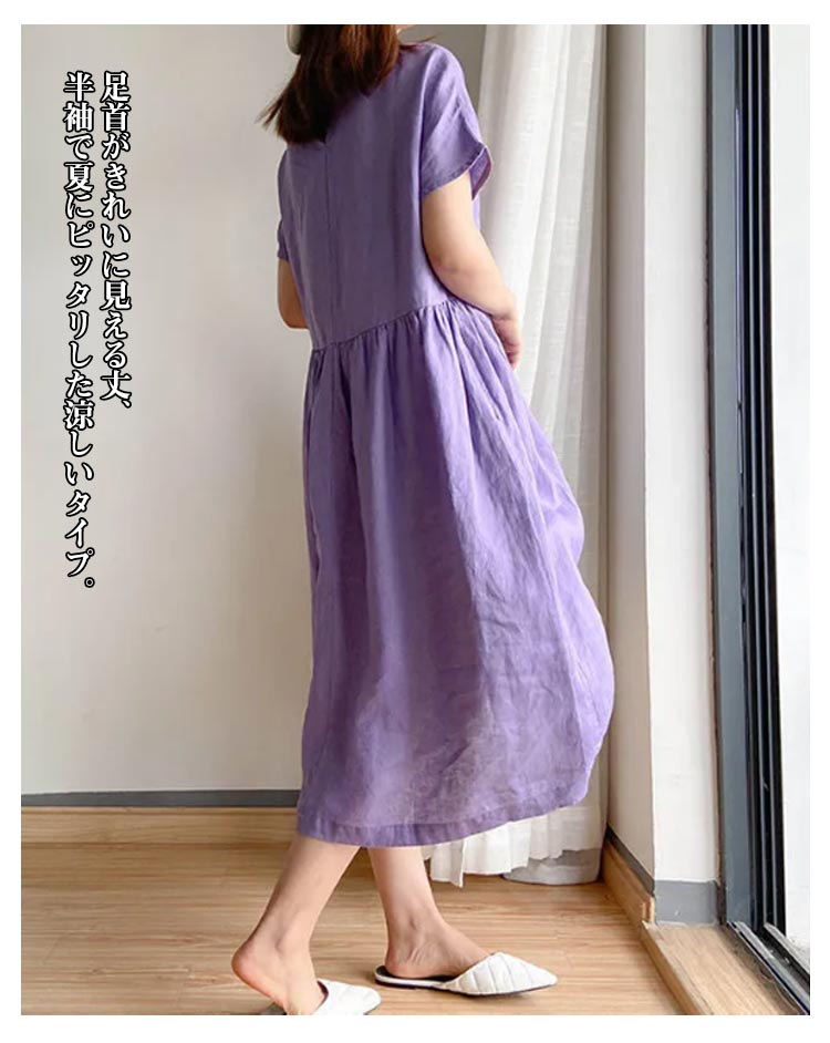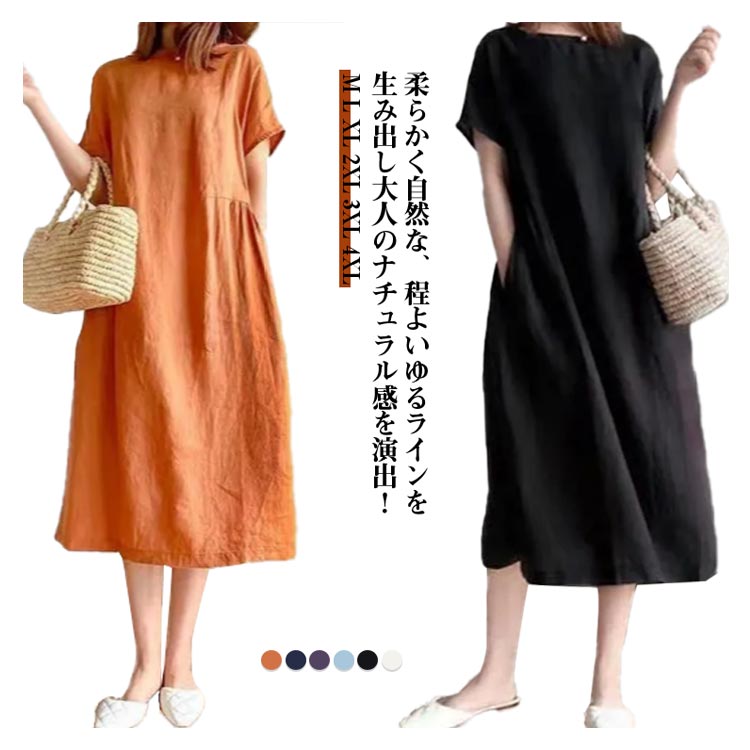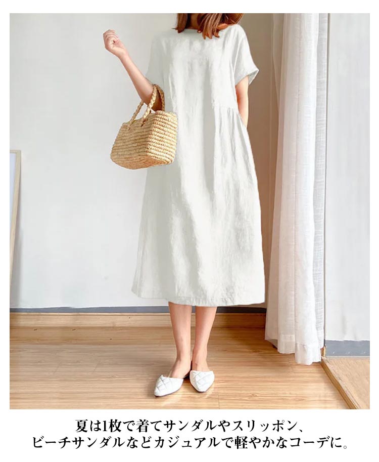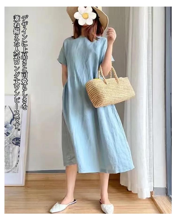 ワンピース ロング丈ワンピース 半袖 ナチュラル 夏ワンピース 綿 春 カジュアル おしゃれ マキシワンピース Aライン ランドネック 薄手 無地 シンプル ゆったり 体型カバー 着瘦せ 細見え 大きいサイズ プレゼント ギフト 送料無料
