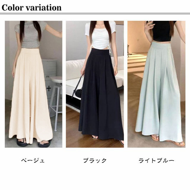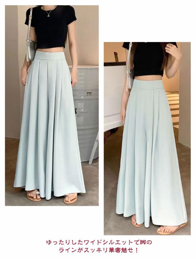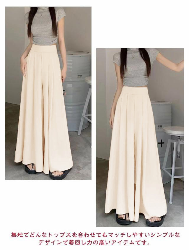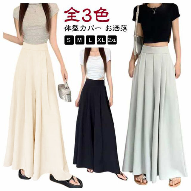 【S-2XL】【全3色】ゆったりしたワイドシルエットで脚のラインがスッキリ華奢魅せ!気になるボディラインを綺麗に隠し、着痩せ効果も得られ、自然にスタイルアップ☆動きやすく、楽に着られます。無地でどんなトップスを合わせてもマッチしやすいシンプルなデザインで着回し力の高いアイテムです。オン・オフ問わず着回しが可能なので、オフィス、カジュアルにも重宝します。通勤・通学からデート、遊び用と幅広くお使いいただけます。