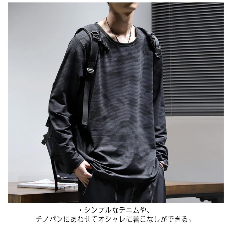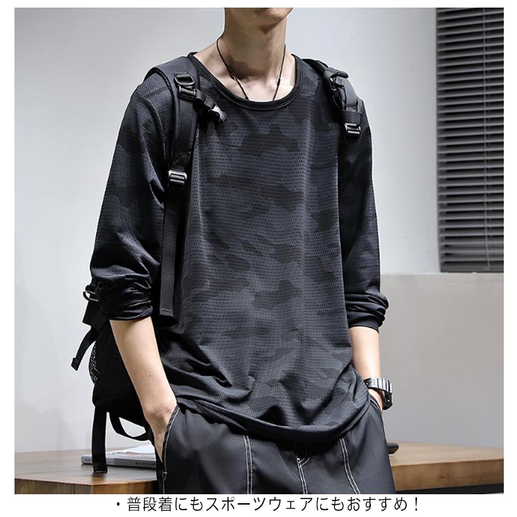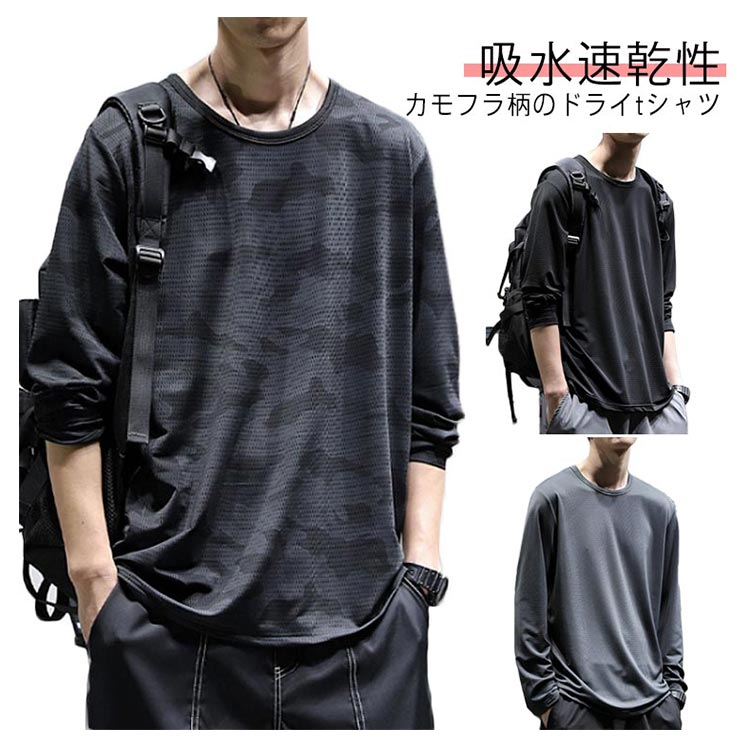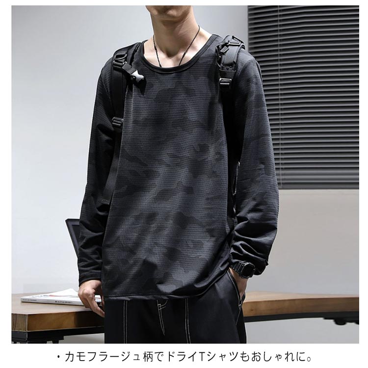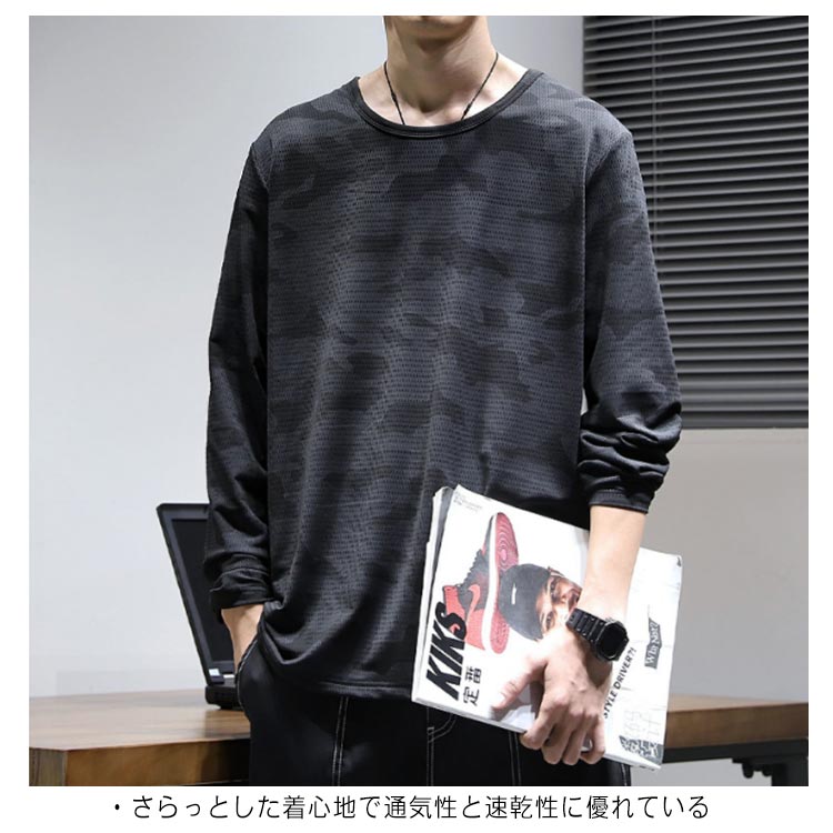 長袖Tシャツ カモフラージュ Tシャツ 迷彩柄 ドライ 長袖 メンズ ストレッチ 迷彩Tシャツ 吸水速乾性 紫外線防止 ドライTシャツ メッシュ アウトドア ミリタリー インナー ダンス 文化祭 大きいサイズ 夏
