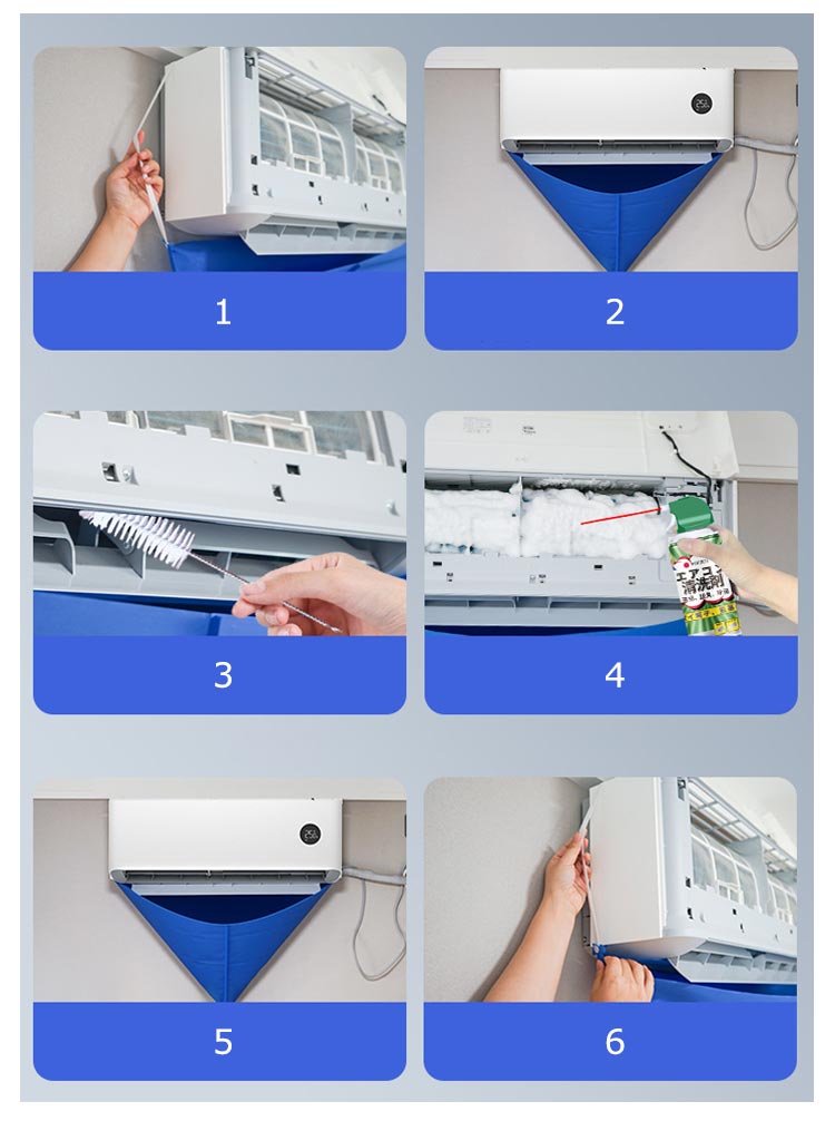 壁掛用 エアコン洗浄カバー 6点セット 家庭用 エアコン掃除カバー 排水ホース付き ブラシ付き エアコン 掃除グッズ 吹き出し口 エアコン掃除用 エアコンクリーニングカバー 掃除道具 すきま 室内機 洗浄カバー 汚水の飛び散り防止 繰り返し 業務用 掃除用品 送料無料