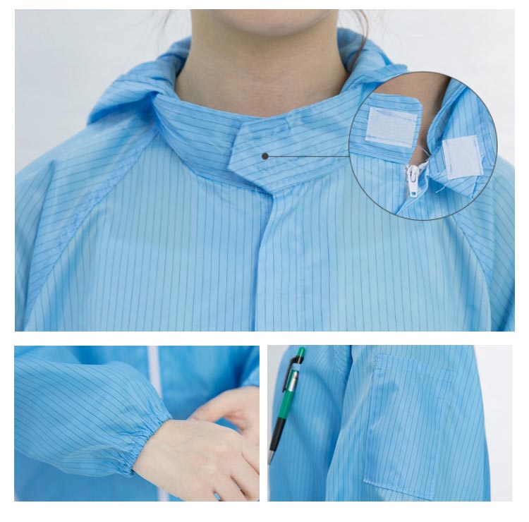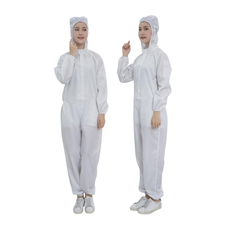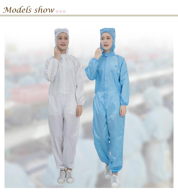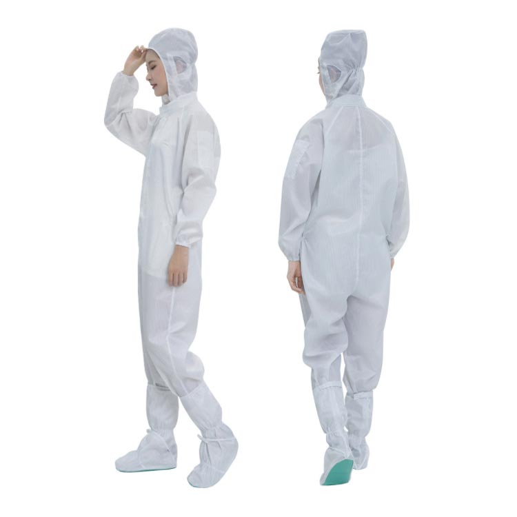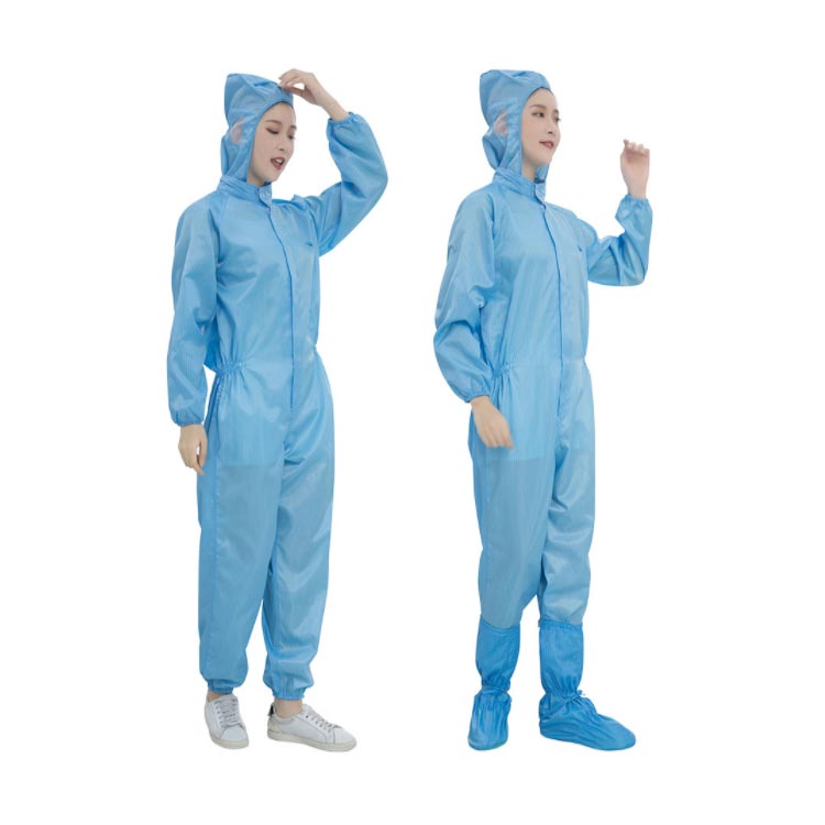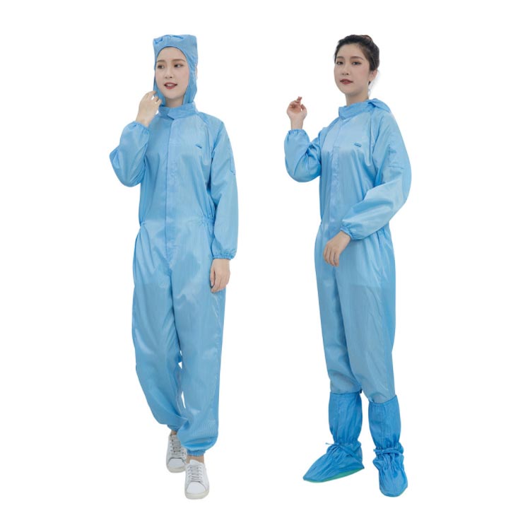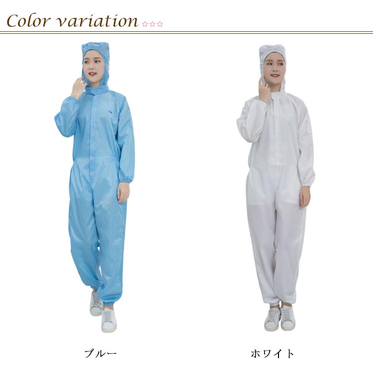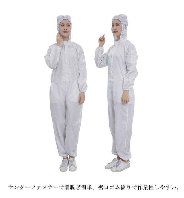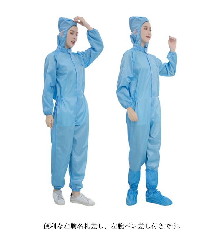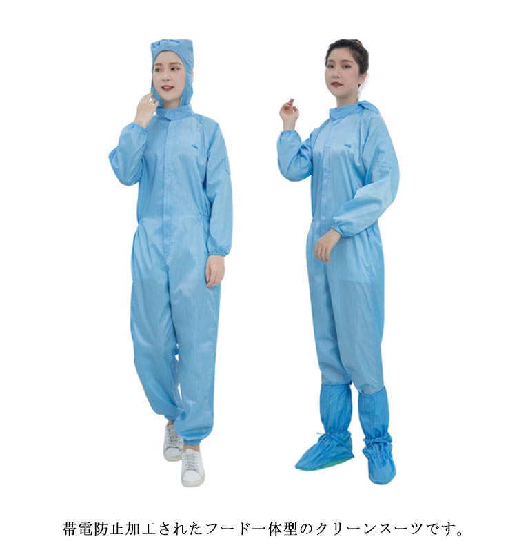 フード一体クリーンスーツ 防塵服 クリーンウェア クリーンルーム用 作業服 つなぎ オールインワン 静電気防止 防塵 ユニセックス 男女兼用 クリーン対策 静電気対策 帯電防止 低発塵 ワークウエア 導電糸入り 送料無料