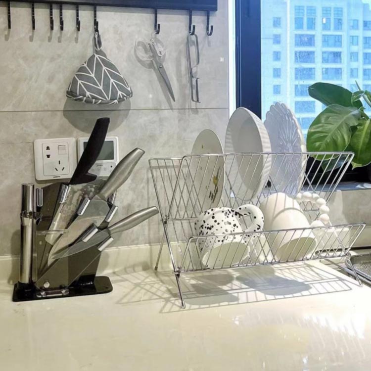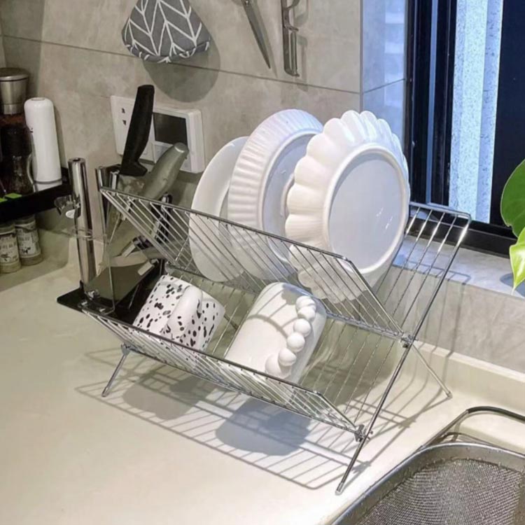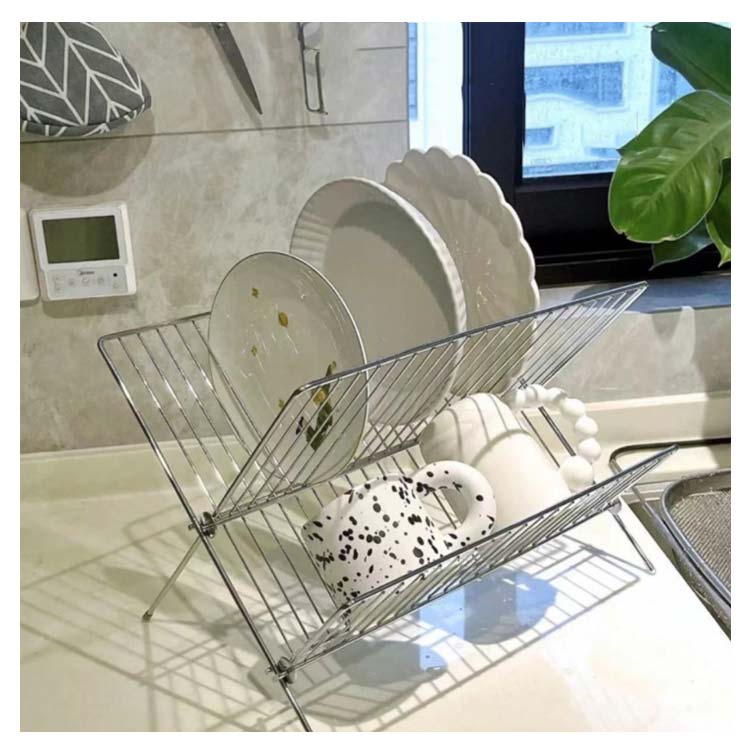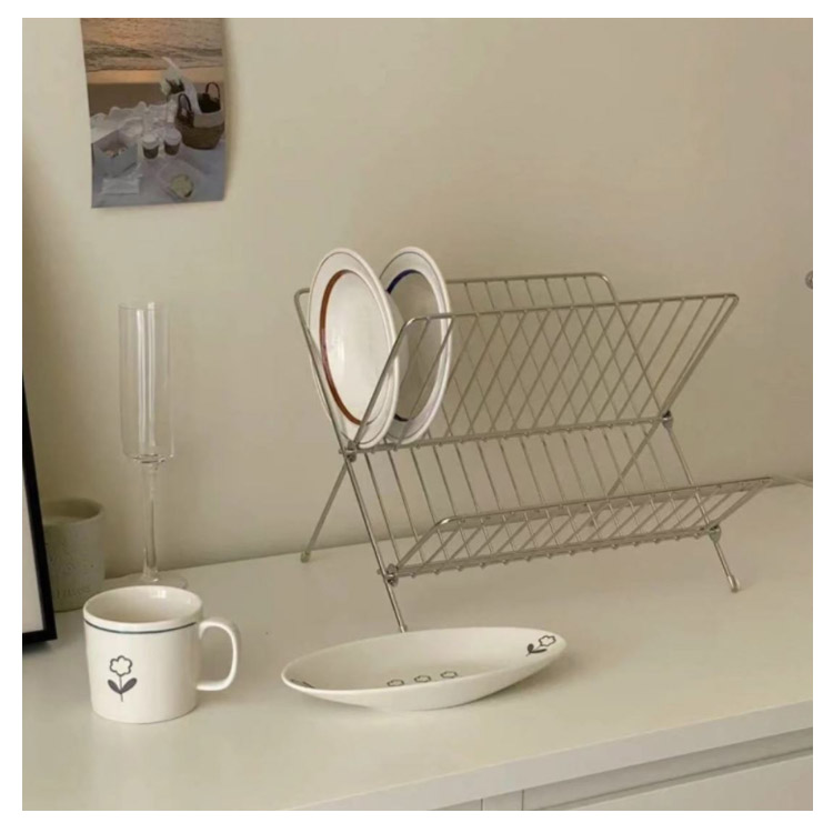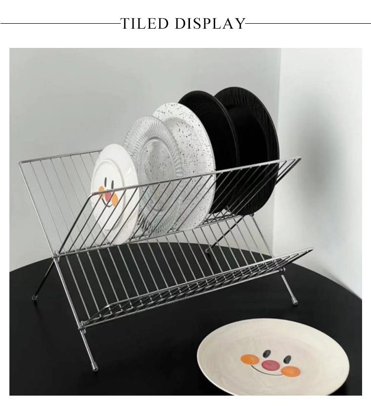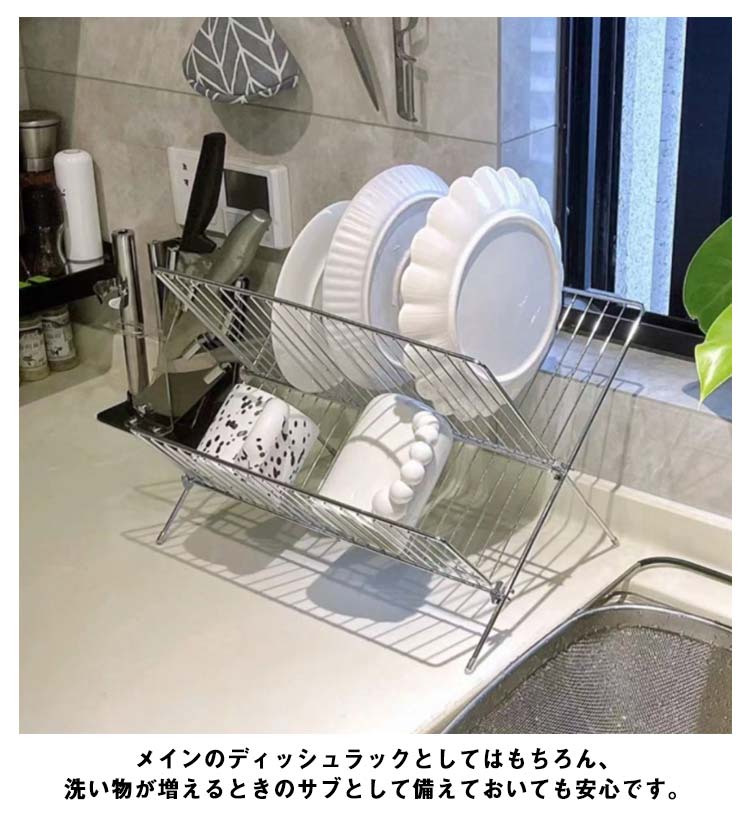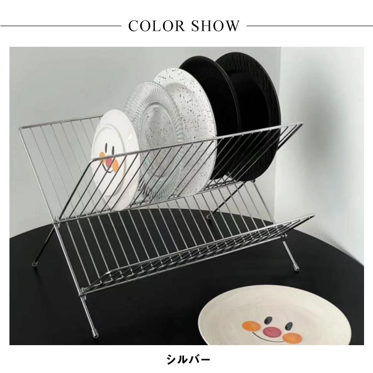ディッシュラック 折り畳み 2段 水切りラック お皿立て 食器ラック 縦置き ディッシュスタンド ステンレス ワイヤーラック 皿スタンド 食器水切り 水切りバスケット 水切りかご 食器棚 食器収納 整理棚 収納棚 キッチン収納 省スペース スリム シンプル おしゃれ 北欧