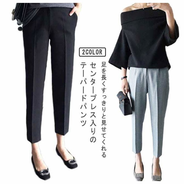テーパードパンツ レディース スラックス シワになりにくい パンツ ウェストゴム ポケットあり 9分丈 ボトムス 大きいサイズ シンプル きれいめ カジュアル 仕事 通勤 オフィスカジュアル 洗える 春 夏