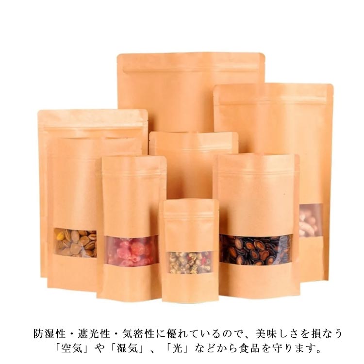 100pcs入り チャック付透明クラフト袋 食品収納袋 密閉袋 ジップ袋 チャック付 クラフト紙袋 10*15cm 透明 窓 窓付き クリア ヒートシーラー使用可能 お菓子 大人数 配布 入り バレンタインデー ママ会 プレゼント