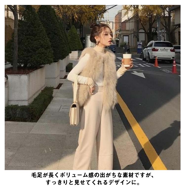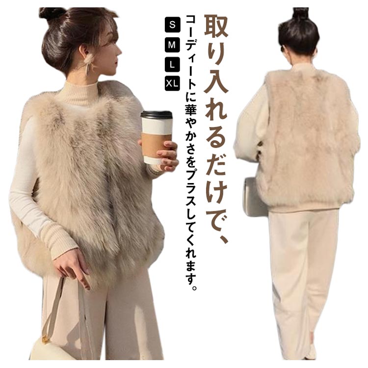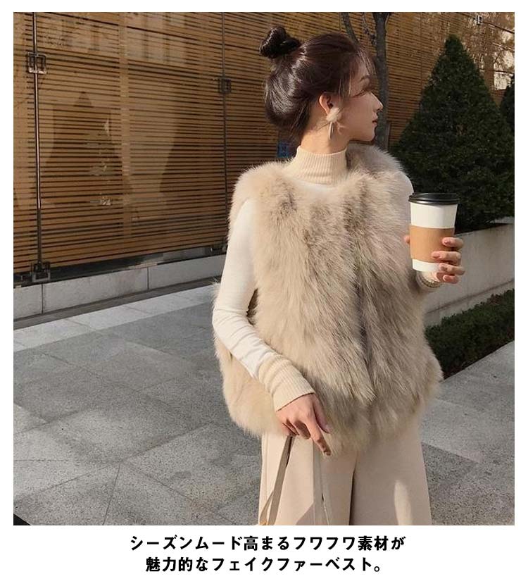 ファーベスト ジレ レディース ファーコート ファージャケット ノースリーブ フェイクファー エコファー ショート丈 ノーカラージャケット アウター 羽織り 秋冬 ふわふわ もこもこ レイヤード 重ね着 きれいめ カジュアル エレガント 送料無料
