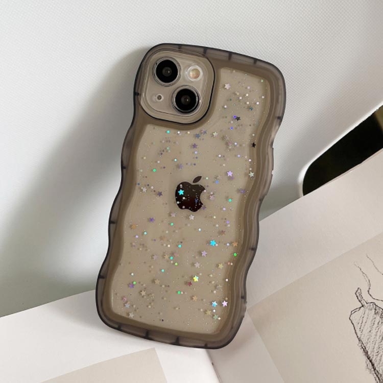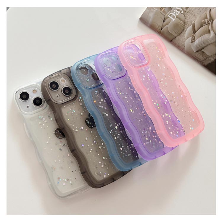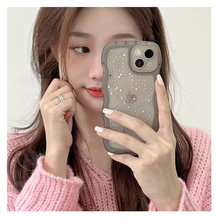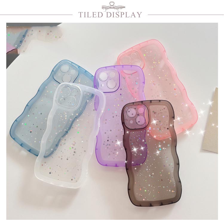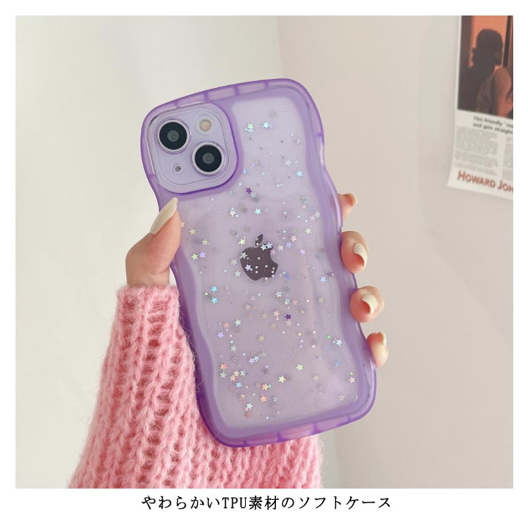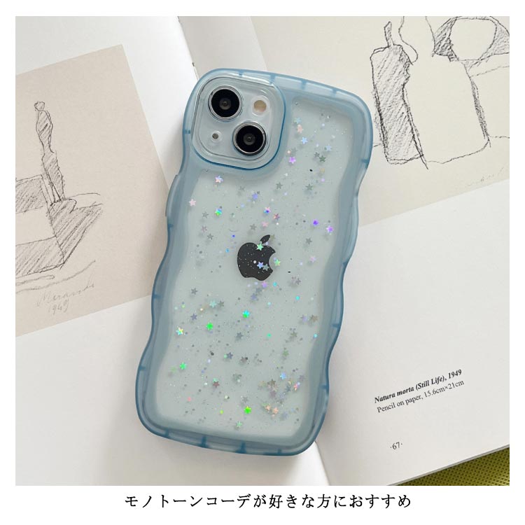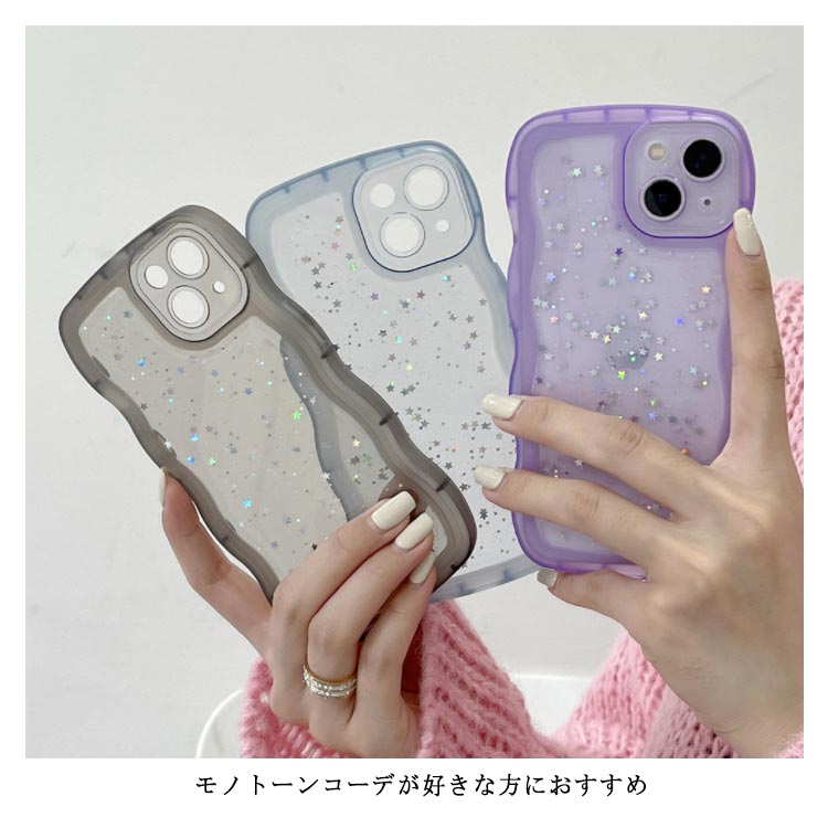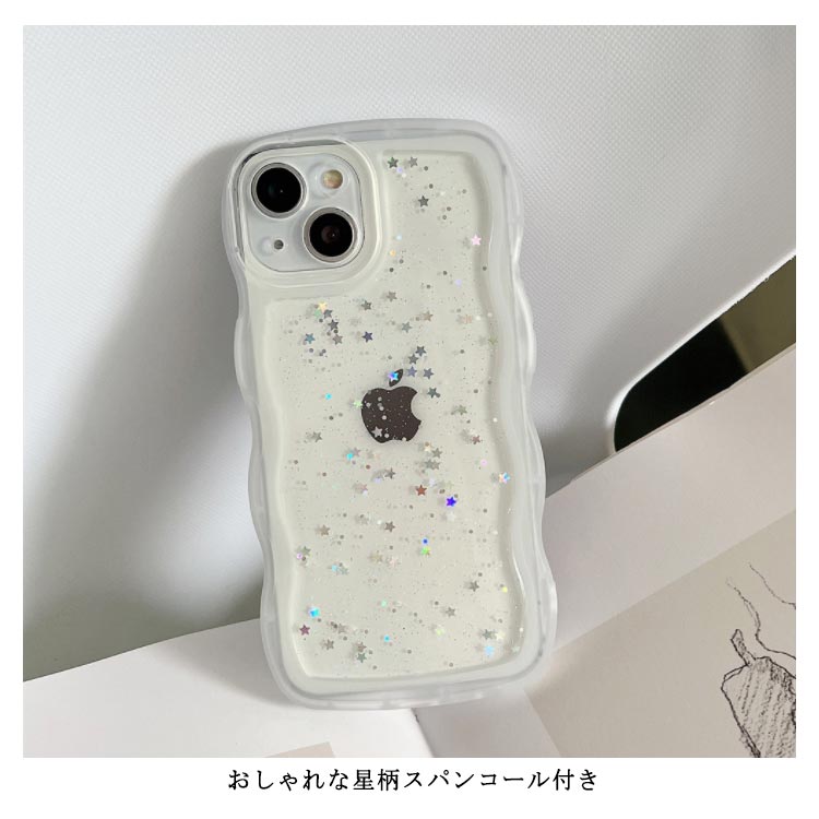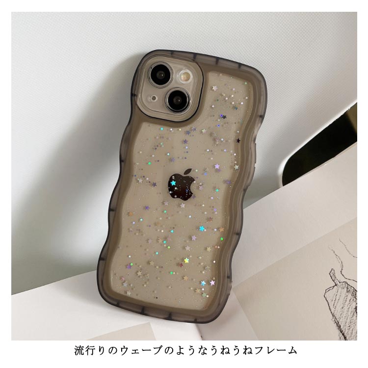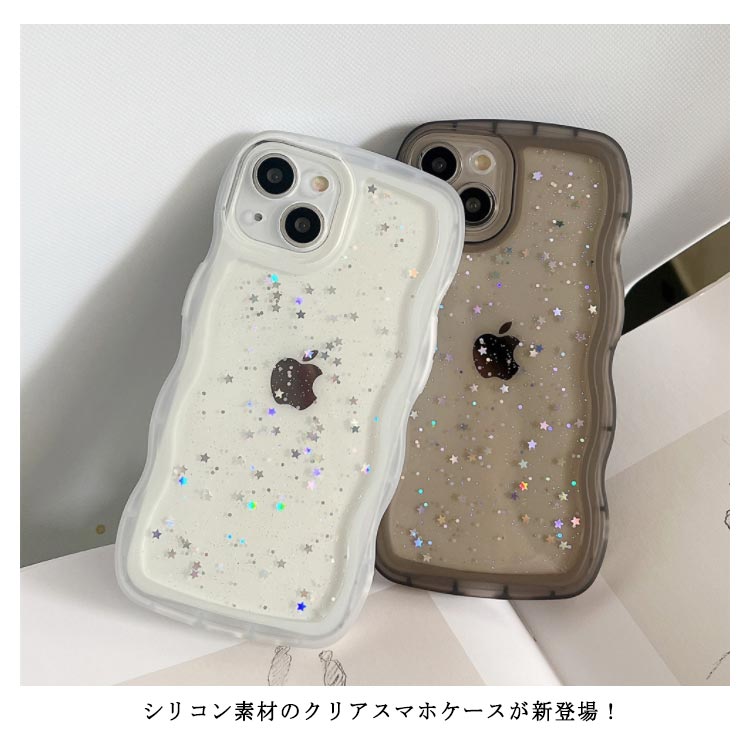 【うねうねフレームが可愛いiPhoneケース 】モノトーンコーデが好きな方におすすめシリコン素材のクリアスマホケースが新登場!■POINT・流行りのウェーブのようなうねうねフレーム・おしゃれな星柄スパンコール付き・やわらかいTPU素材のソフトケース・衝撃を吸収しやすく着脱が楽ちん・モノトーンコーデが好きな方におすすめ