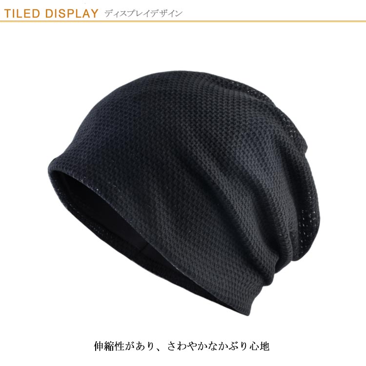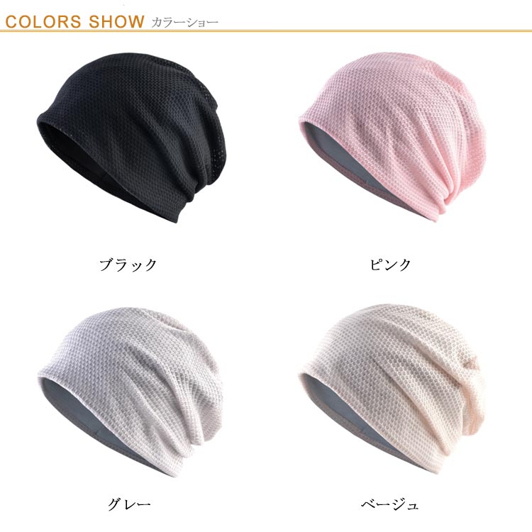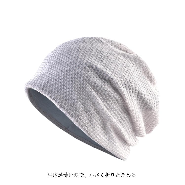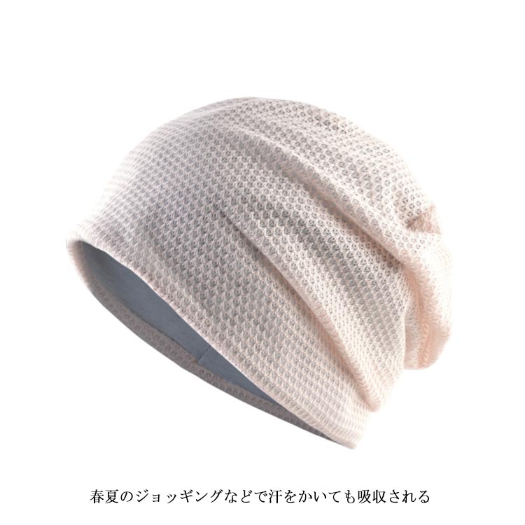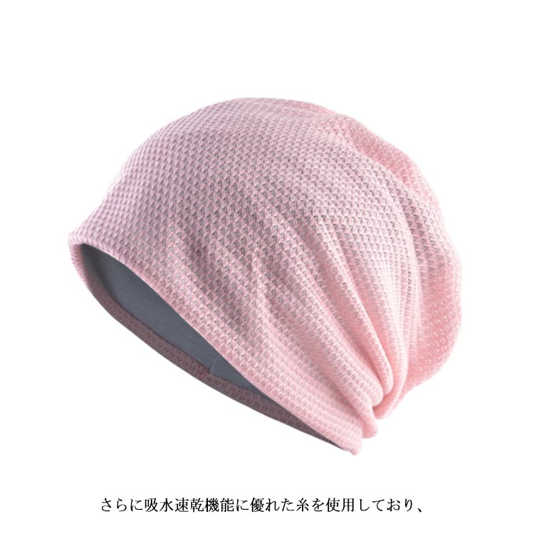 抗がん剤治療、医療用帽子に最適、メッシュ生地で通気性抜群帽子伸縮性があり、さわやかなかぶり心地さらに吸水速乾機能に優れた糸を使用しており、春夏のジョッギングなどで汗をかいても吸収される生地が薄いので、小さく折りたためる軽く手かさばらないので被らない時はカバンに入るので持ち運びも便利