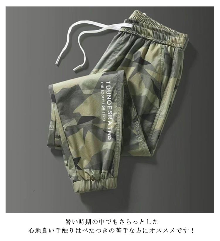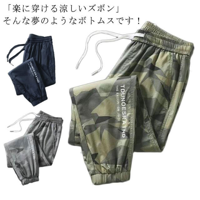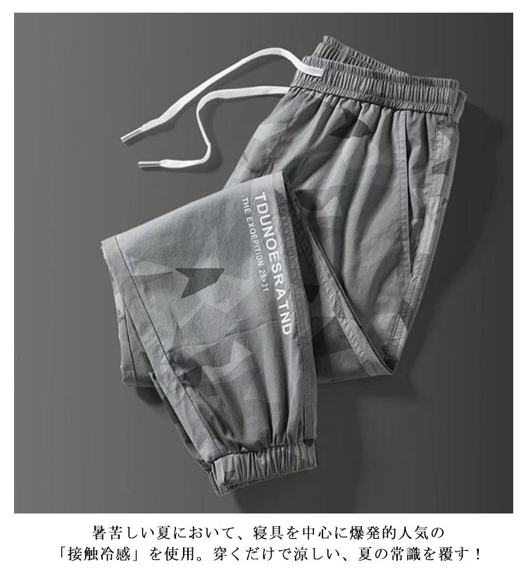 M~5XL!迷彩柄 スキニーパンツ 冷感パンツ メンズ アイスシルク 接触冷感 ひんやり 涼しい ロングパンツ イージーパンツ 薄手 ゴルフパンツ ストレッチ 伸縮 長ズボン 通気 速乾 スポーツ カジュアル 無地 おしゃれ 大きいサイズ 調整紐 夏 春 秋 クール感 送料無料