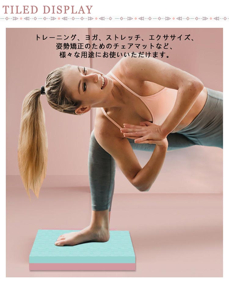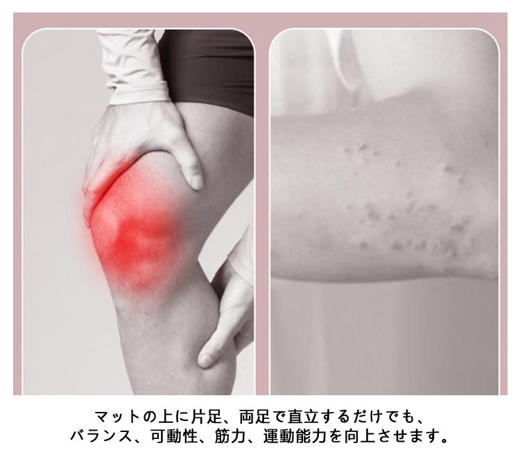 | 体の動きの土台となる体幹を鍛えるバランスマットです。 環境にやさしい高密度、無臭のTPE素材を採用し、弾力性を持ってすぐに形状を復元することができ、汗にも強い特徴があります。 軽量のため自宅からワークアウトまで簡単に持ち運ぶことができます。 両面に滑り止め加工が施されており、素足や靴で安全に使用できて、床面に接する面も滑りにくくなっています。 トレーニング、ヨガ、ストレッチ、エクササイズ、姿勢矯正のためのチェアマットなど、様々な用途にお使いいただけます。 マットの上に片足、両足で直立するだけでも、バランス、可動性、筋力、運動能力を向上させます。 | |